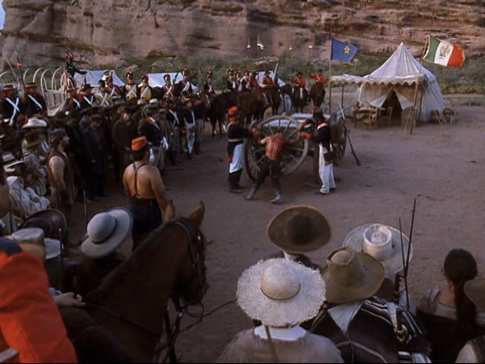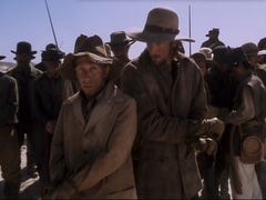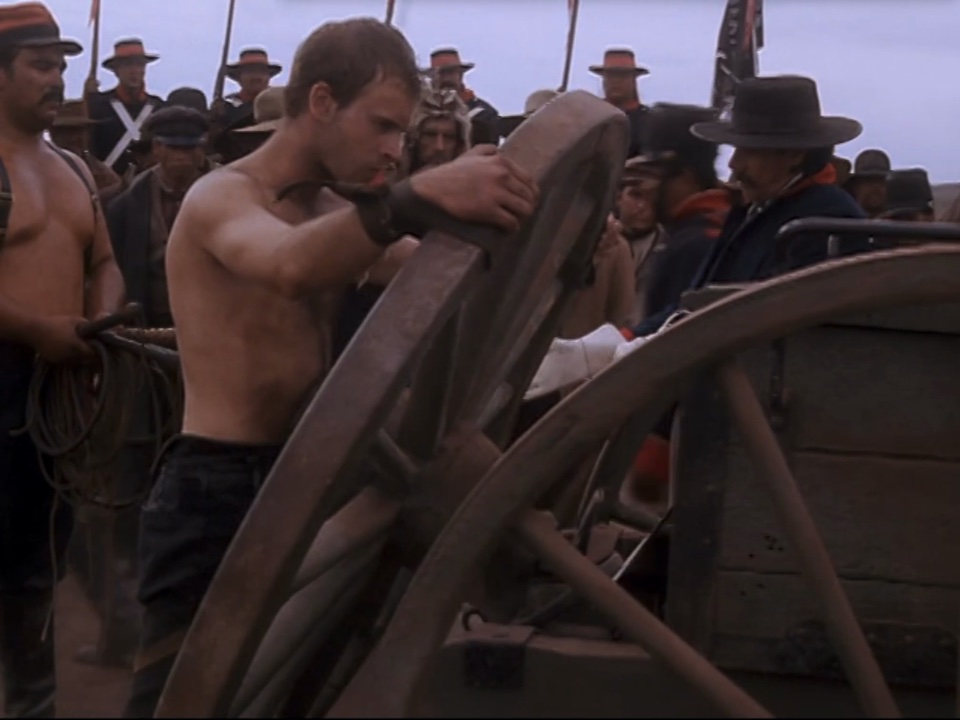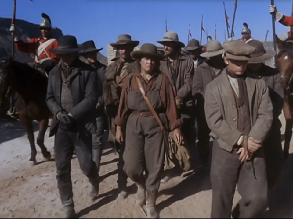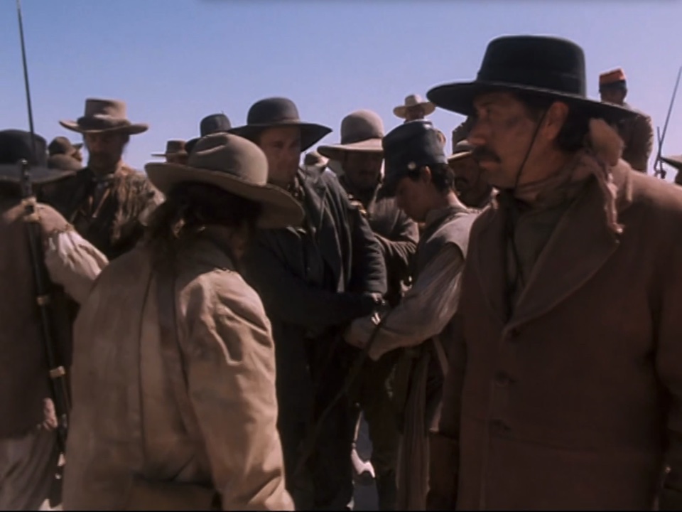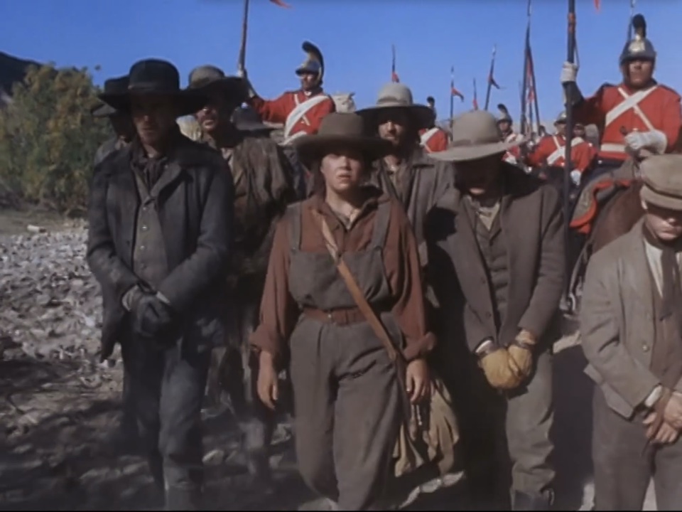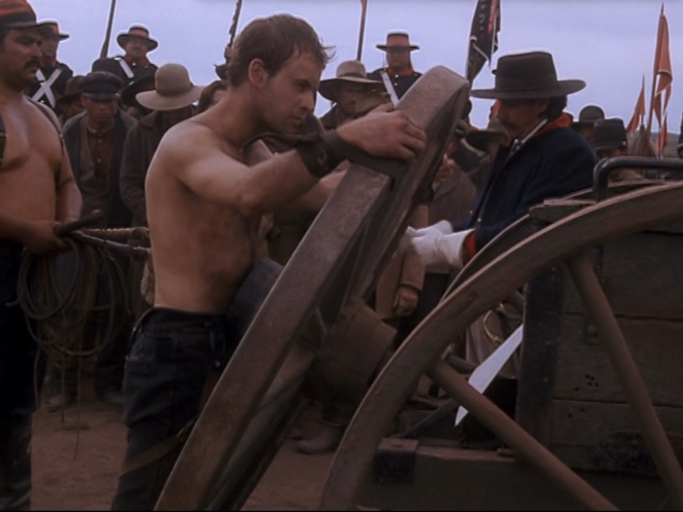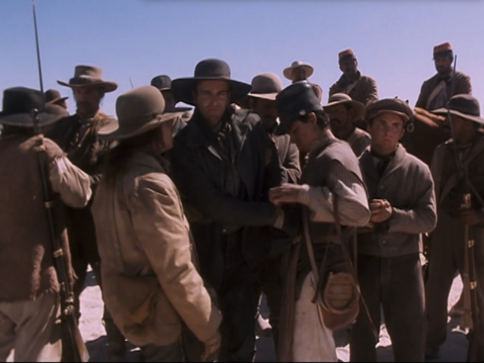 A captured Texas Ranger is punished; later, the captured Rangers are marched through the desert.