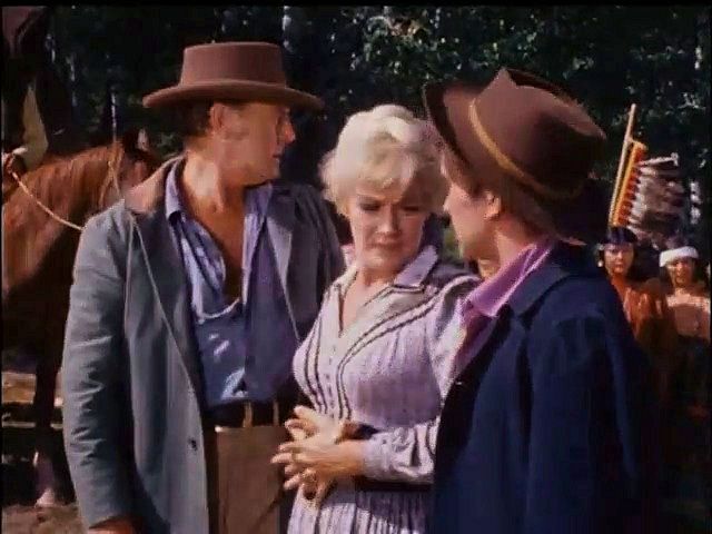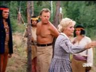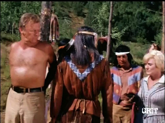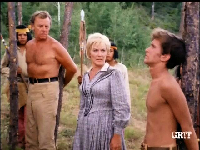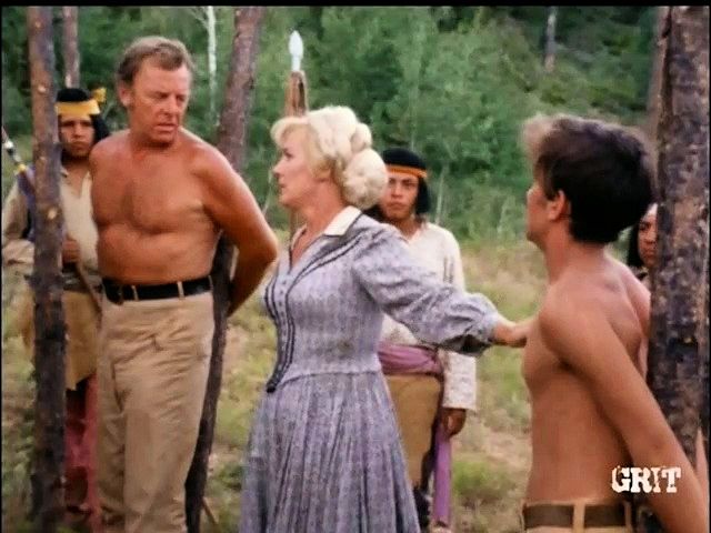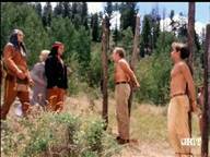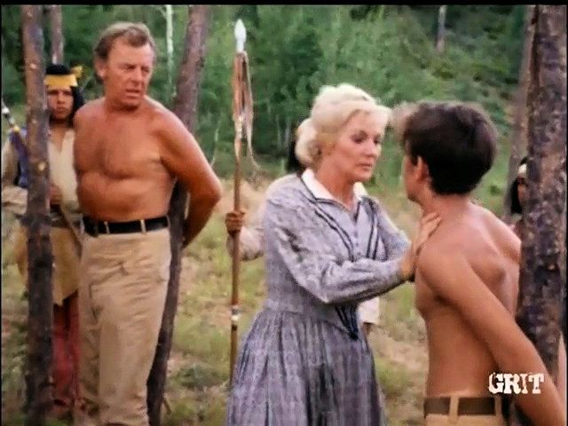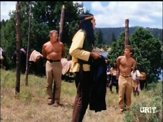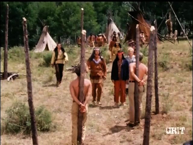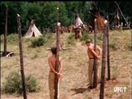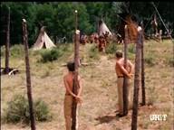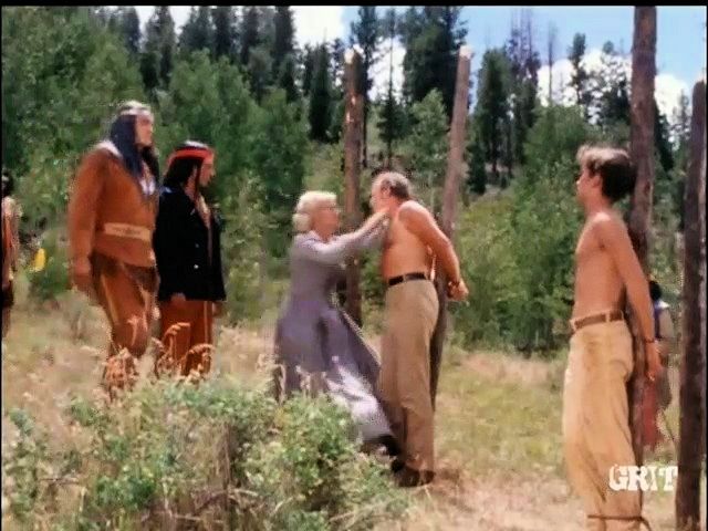 A pioneer woman pleads with an Indian chief to spare the lives of her husband and son.