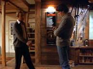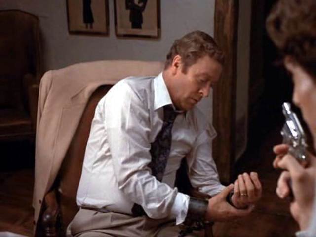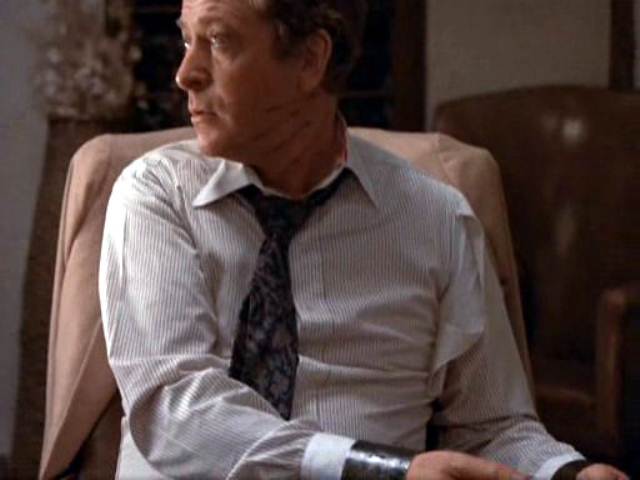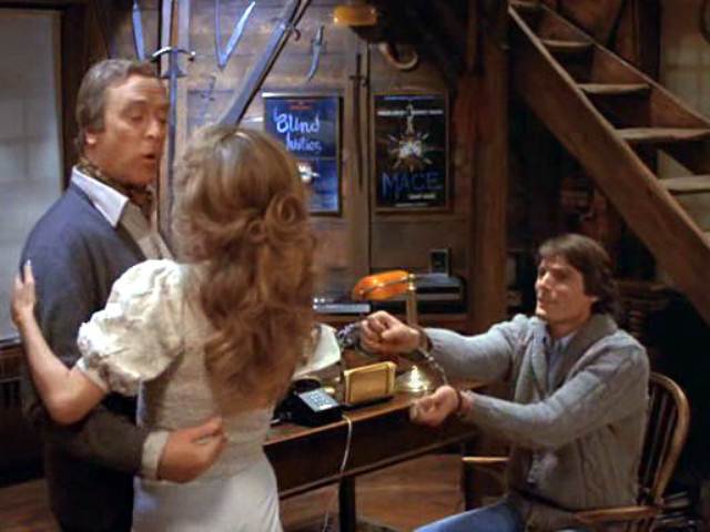 Reeve appears to be tricked into handcuffs, and then attacked by Caine. Later, Reeve returns the favor. This is a fun film, worth catching if you haven't seen it.