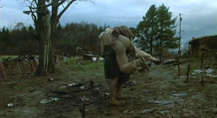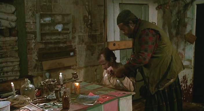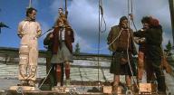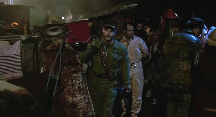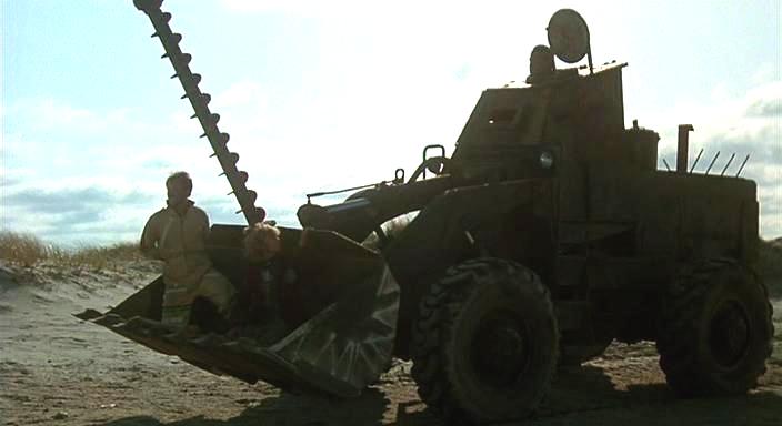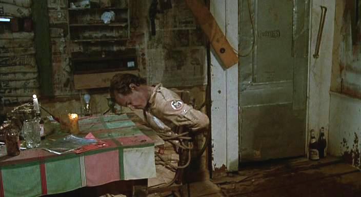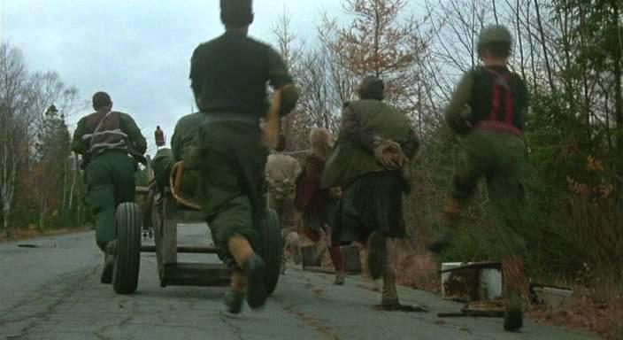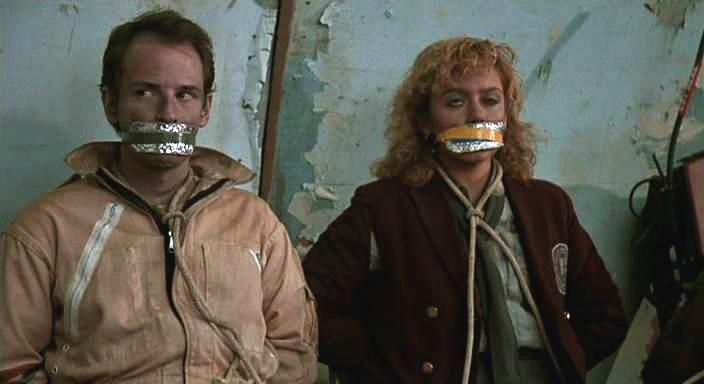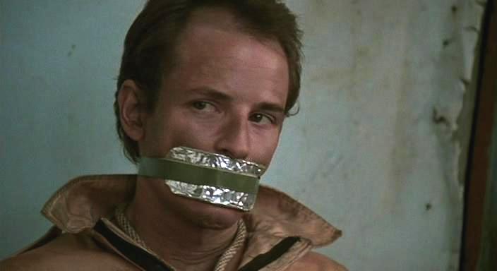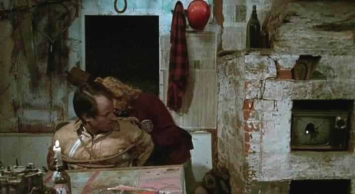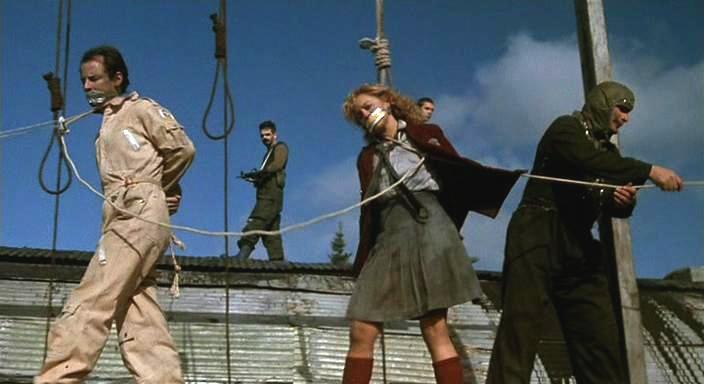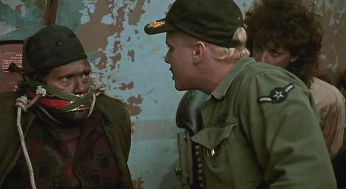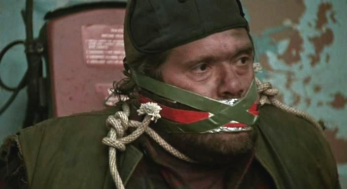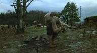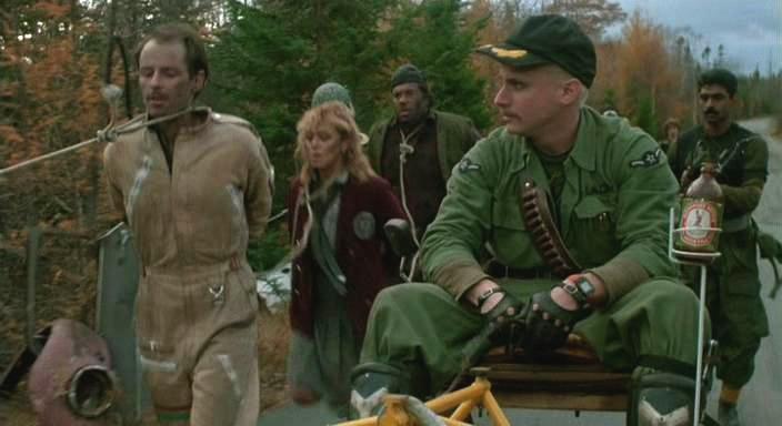 An astronaut is captured and tied up by a gruff woodsman, and then they're both captured by some post-apocalyptic types.