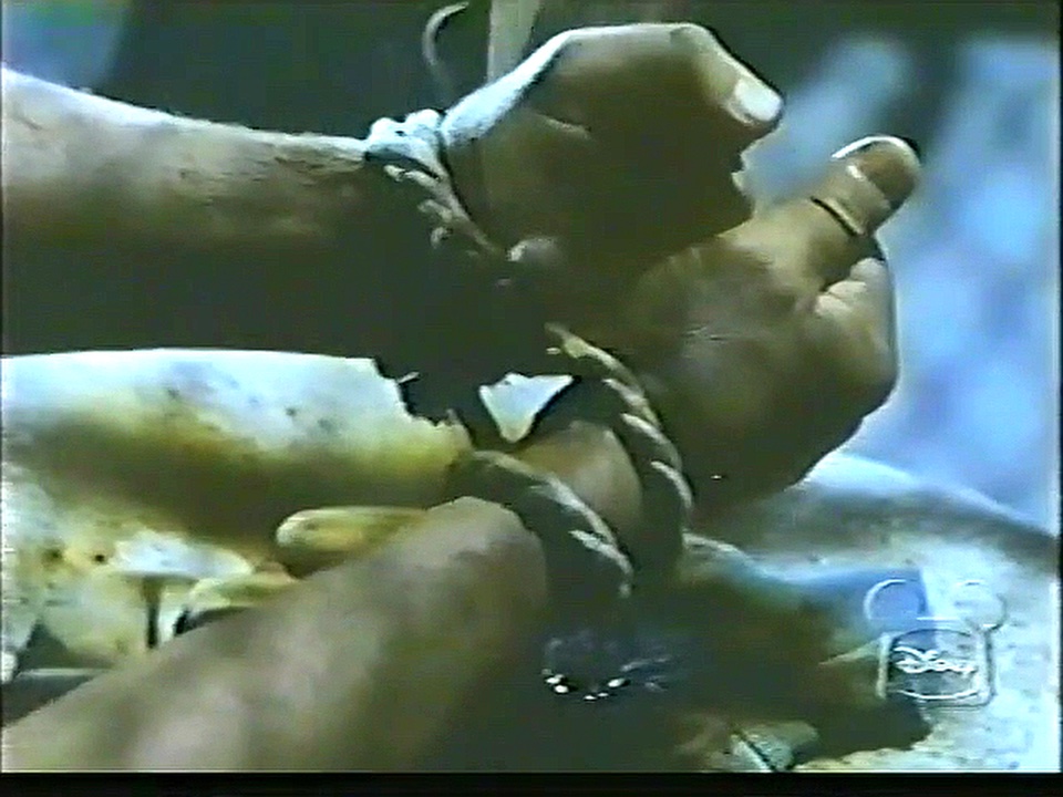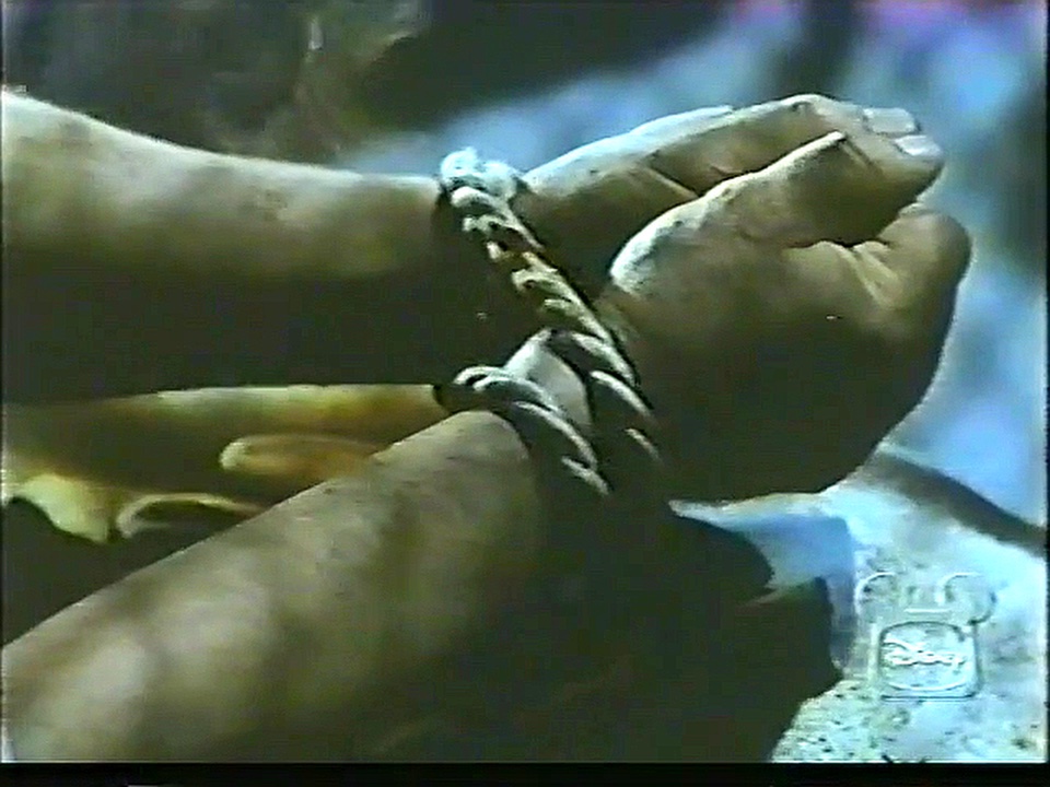When the group is captured and tied up, Roger burns the rope by putting his wrists under dripping acid.