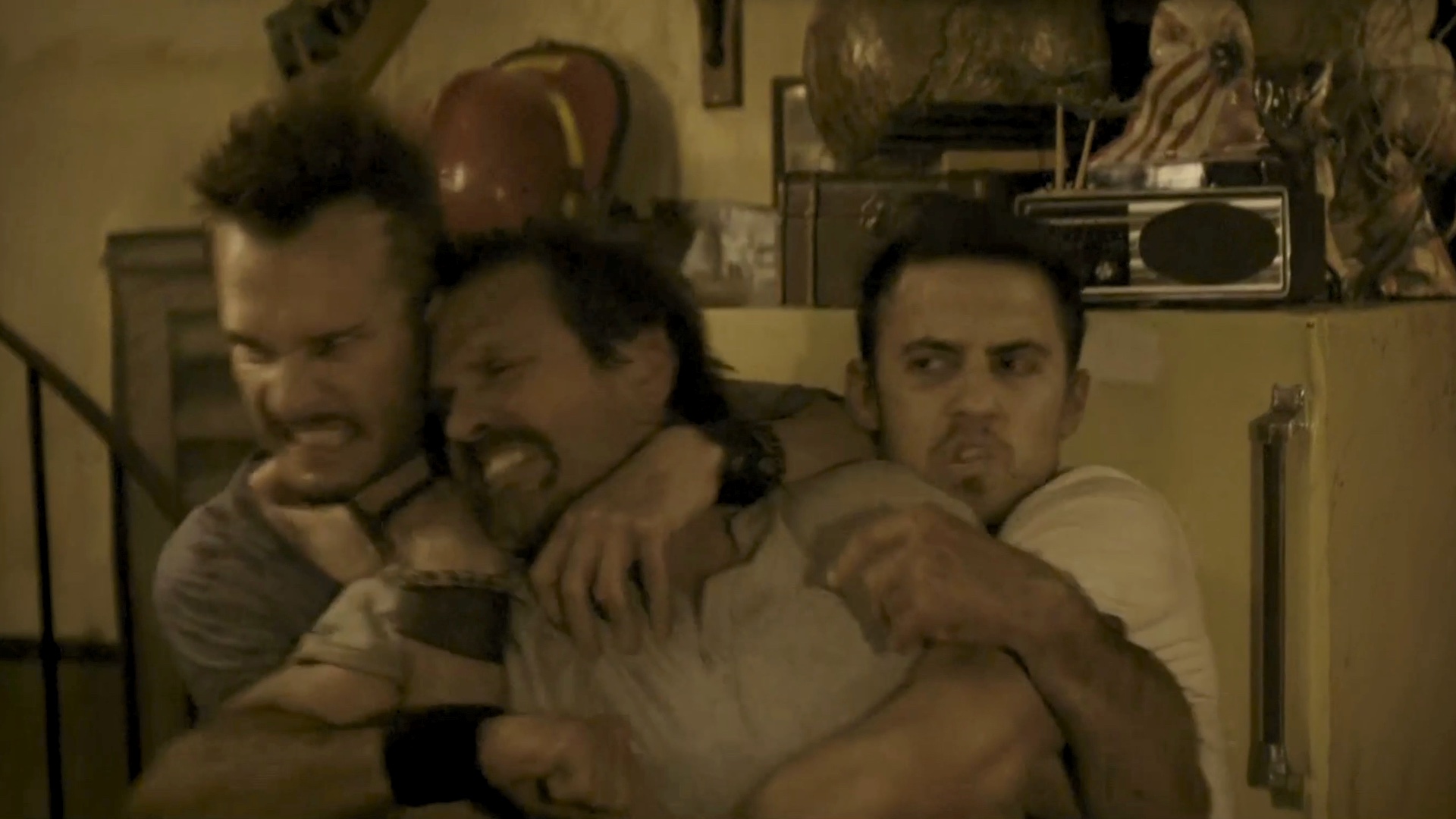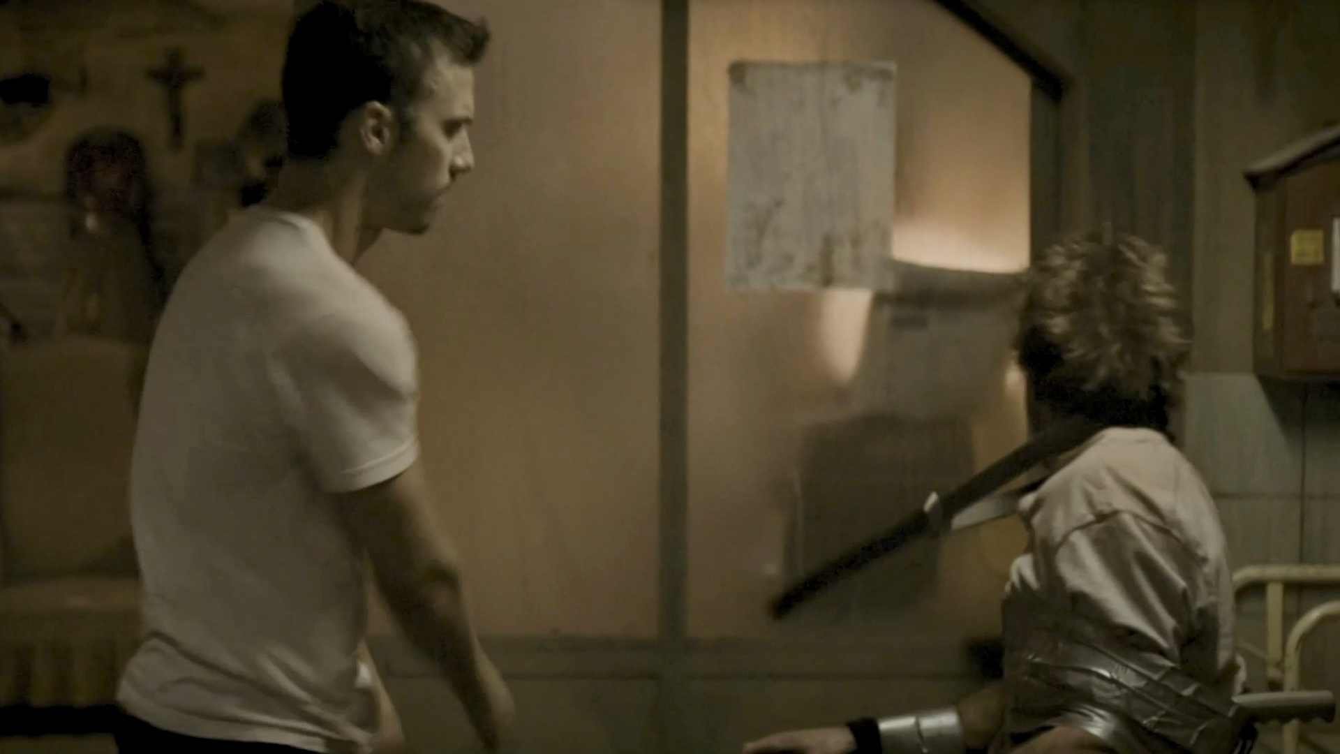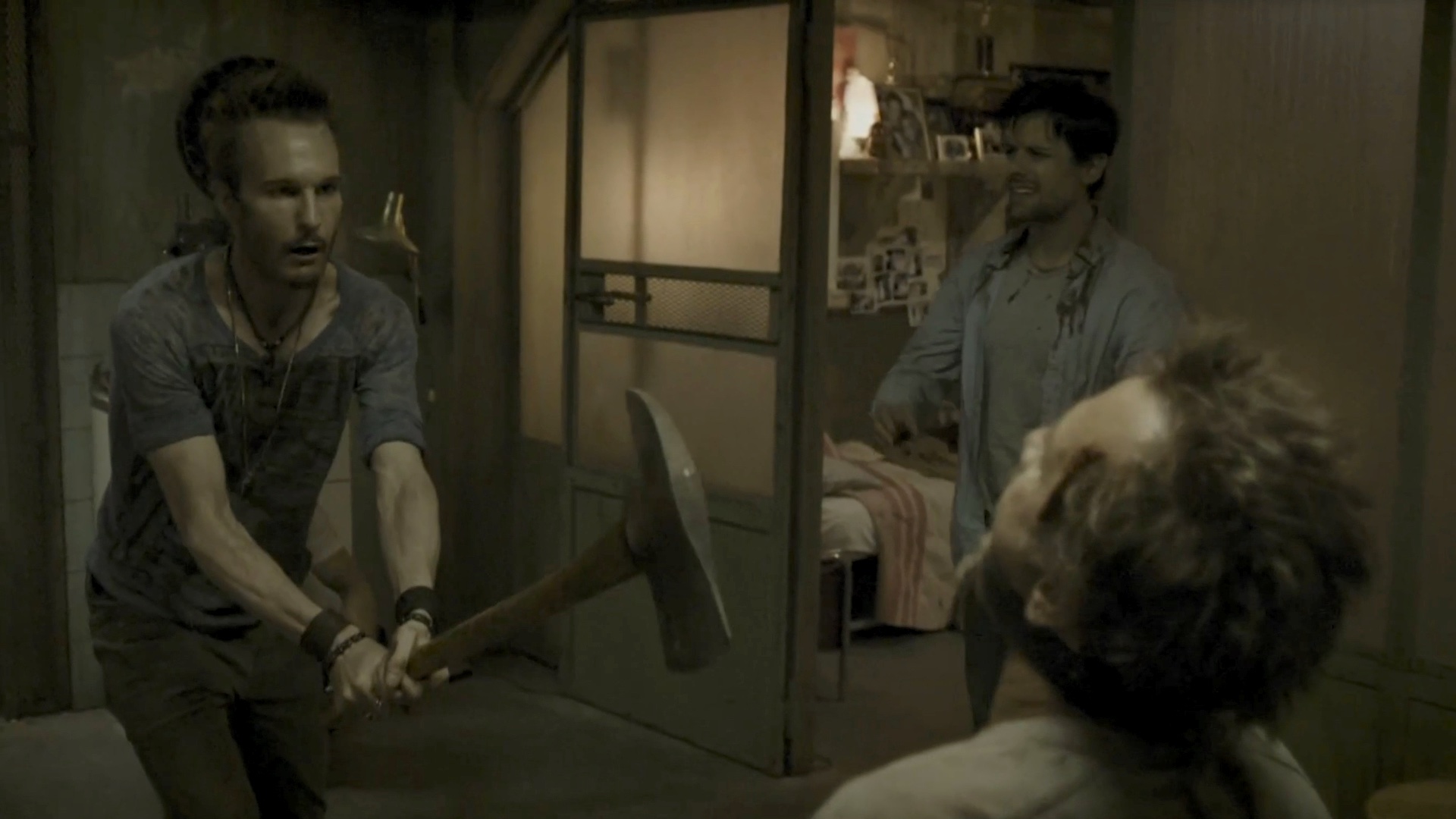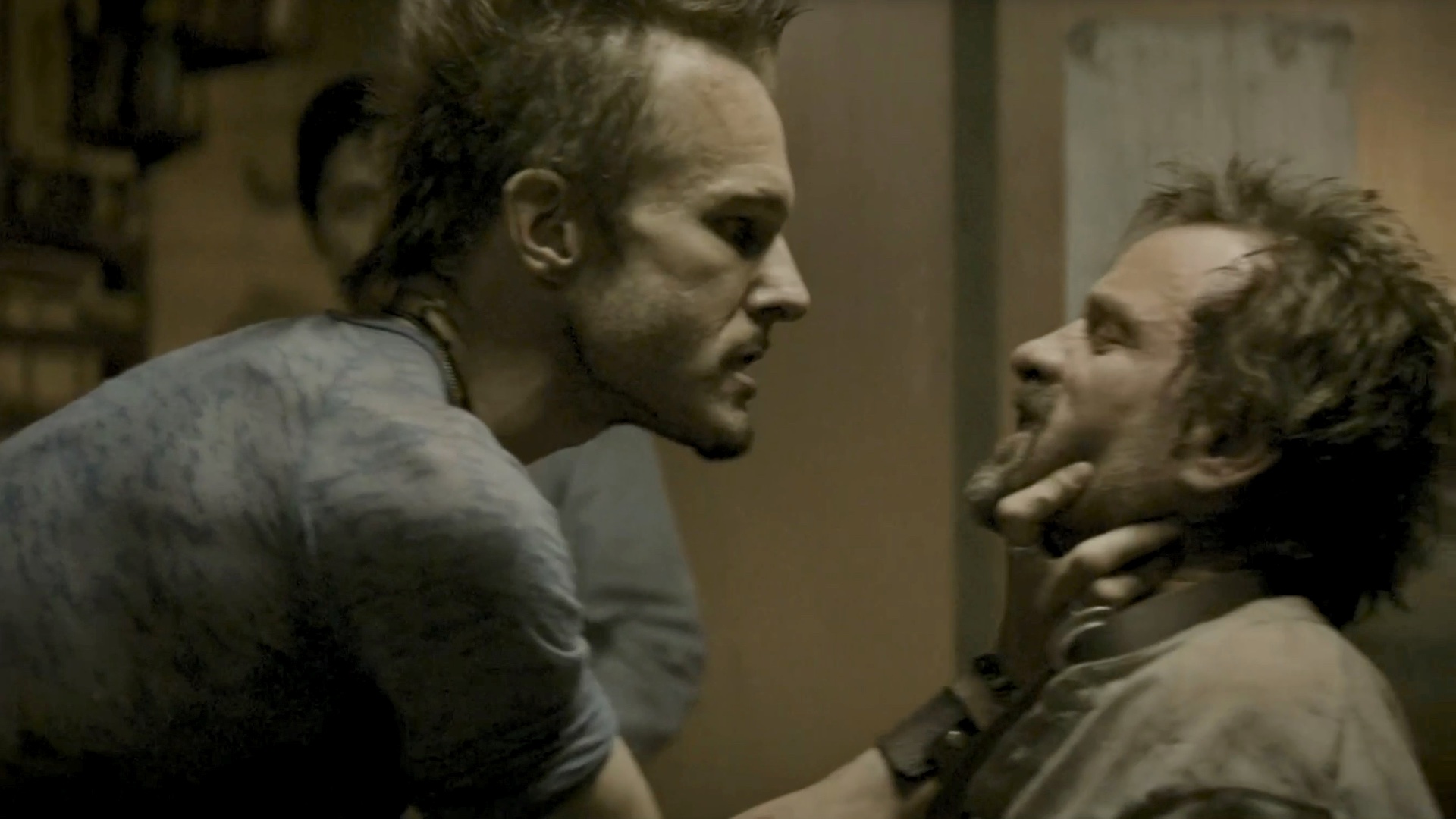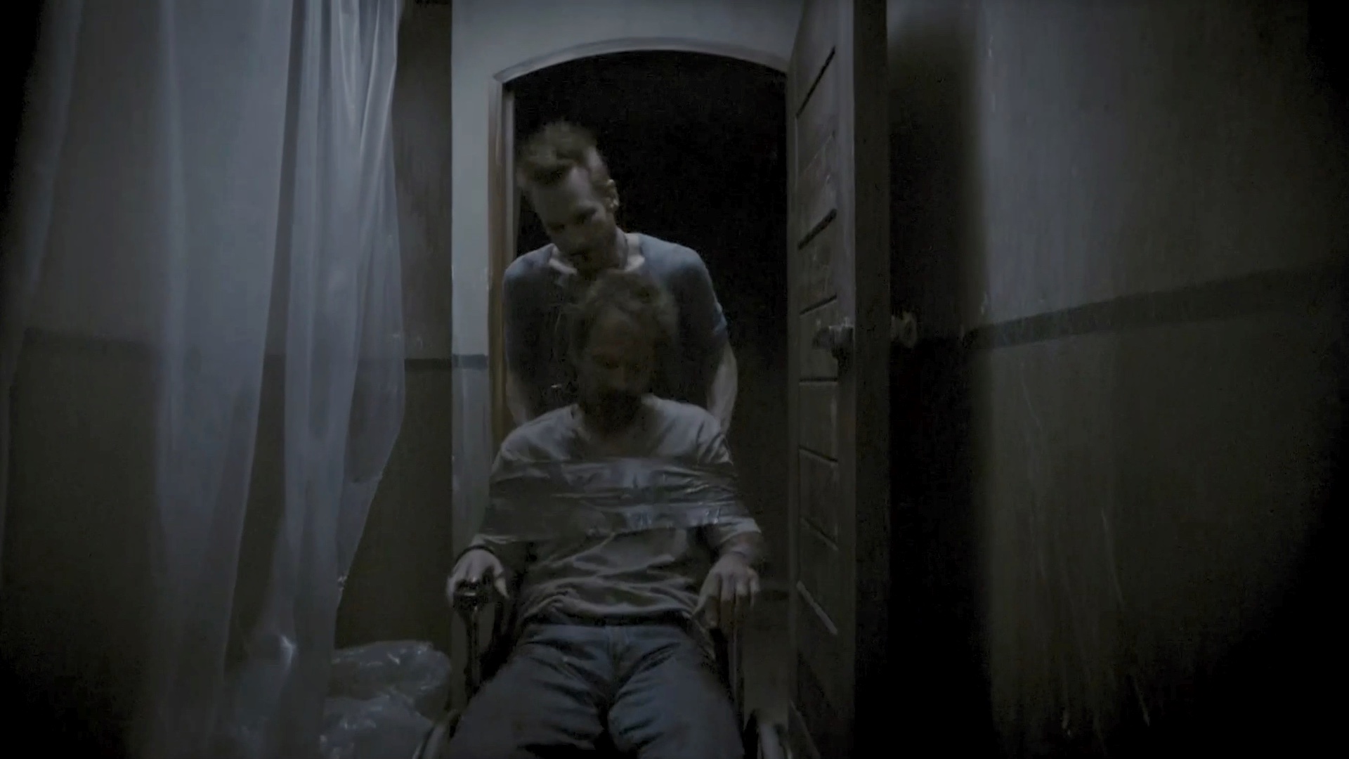 One of a group of survivors is tortured by some of the others.