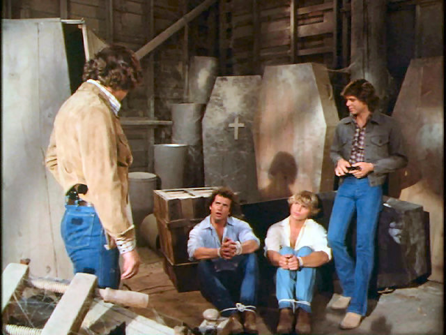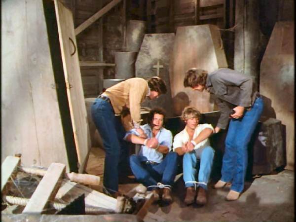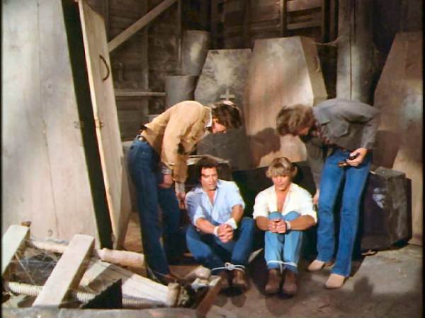 Boss Hogg hires two crooks to impersonate the Dukes and commit a robbery while keeping the real Duke boys tied up and stored away in coffins.