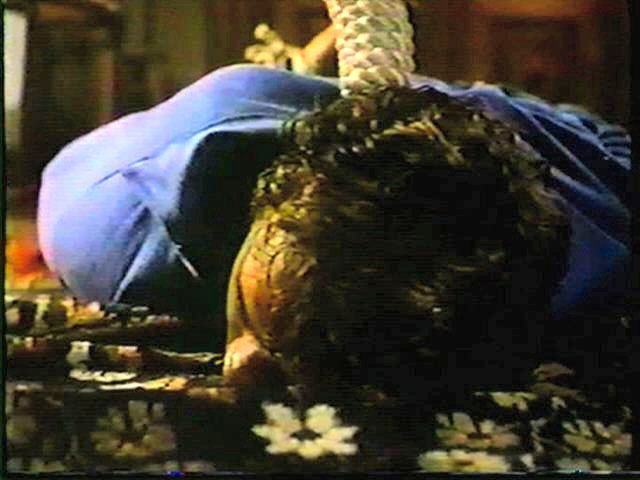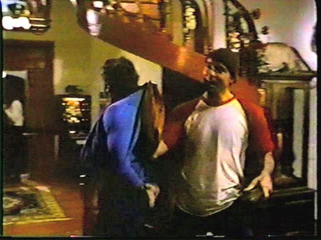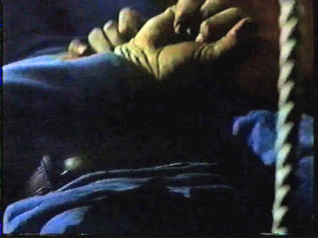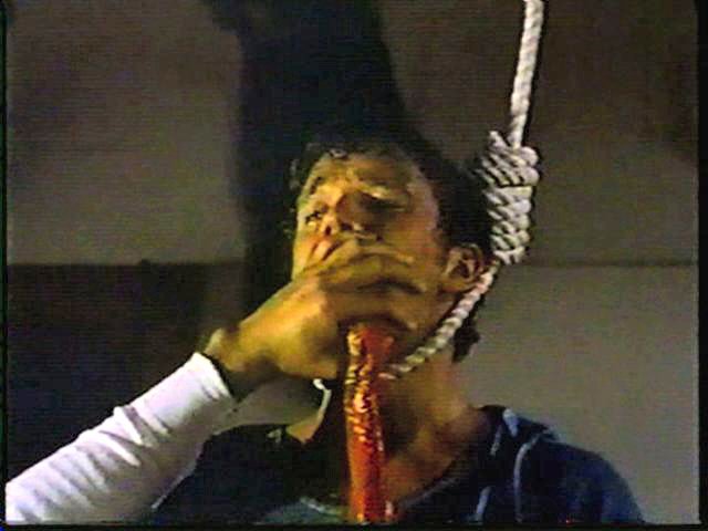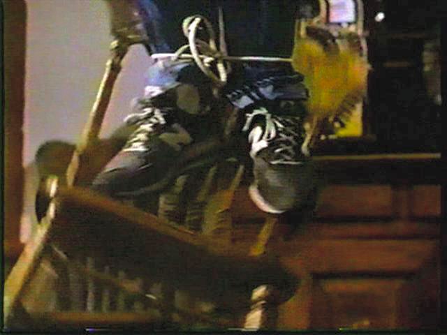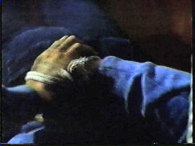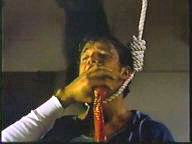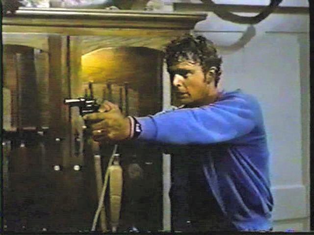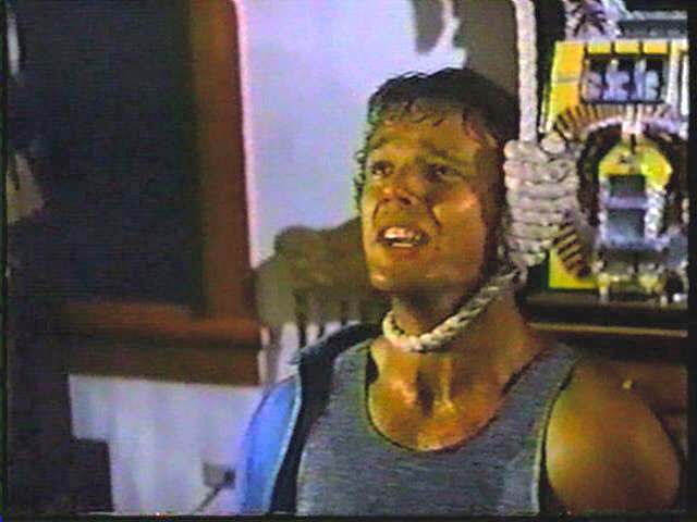 Eddie is caught and tied up by some country folk after breaking out of prison. When they try to hang him, he manages to get his hands free and grabs a conveniently-placed gun.