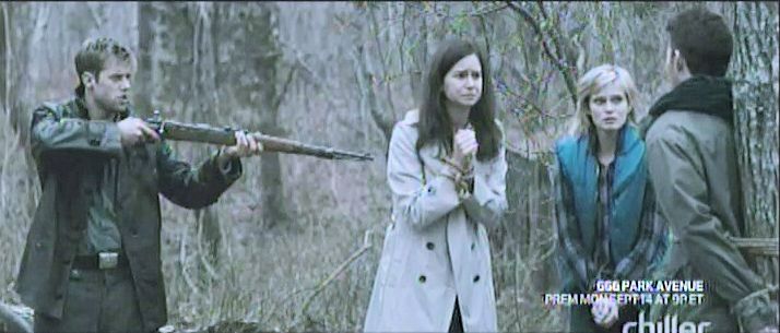 Three people at a mysterious cabin are captured and tied up by a German soldier (Sipos) and then turn the tables.
