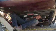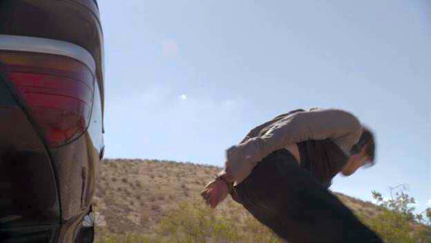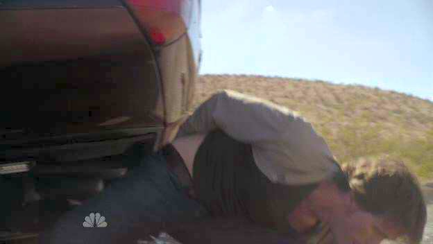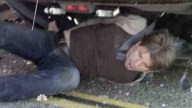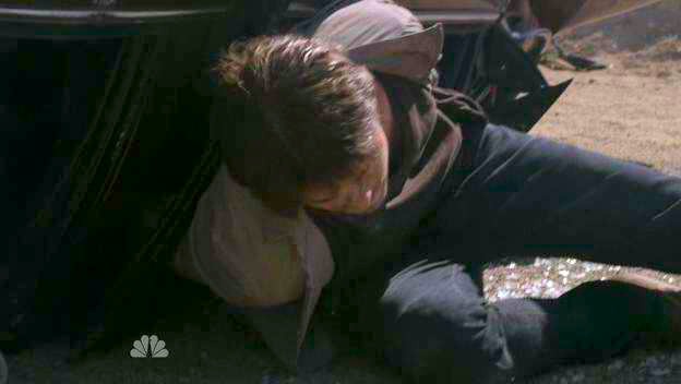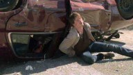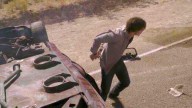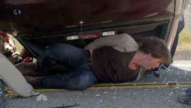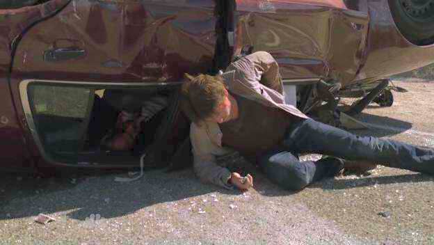 The car that agents are transporting Sean in crashes, and he wriggles around to get the key to his handcuffs.