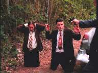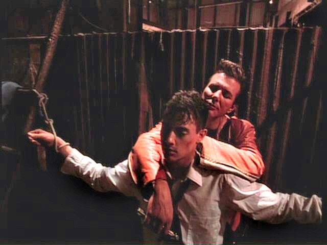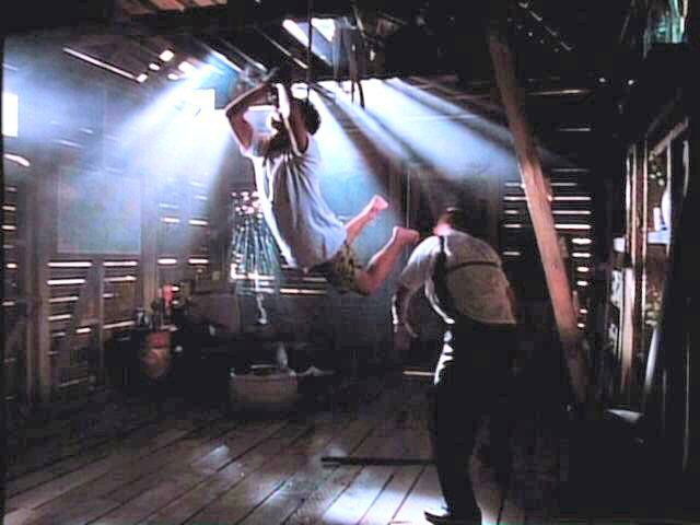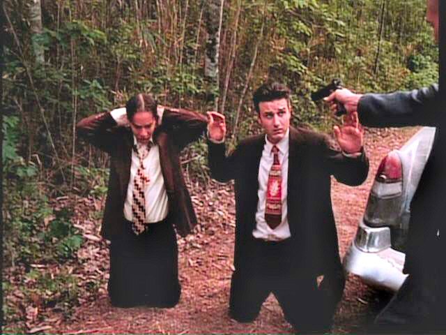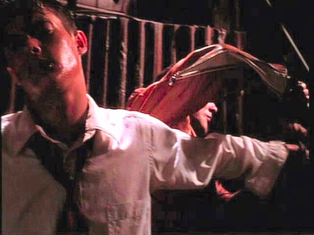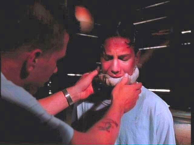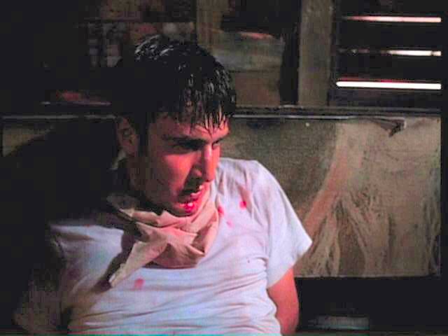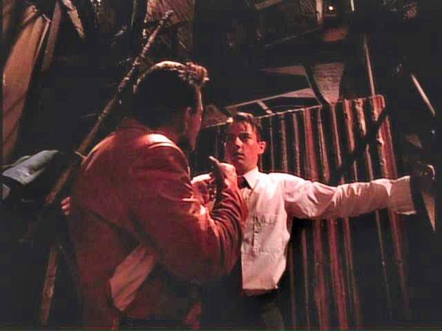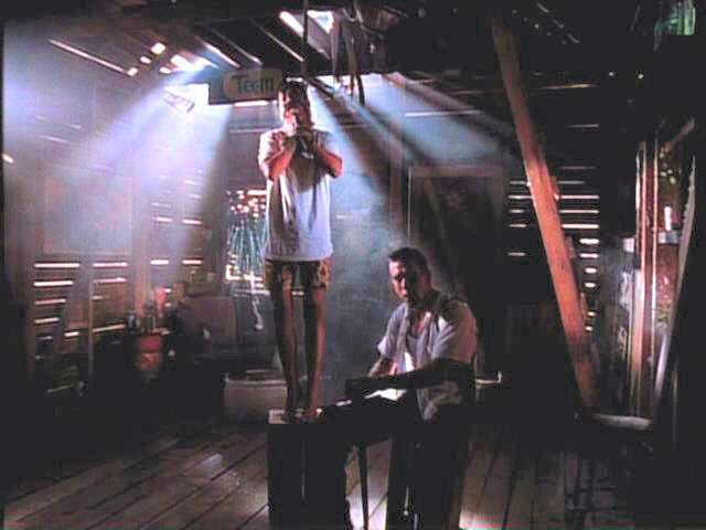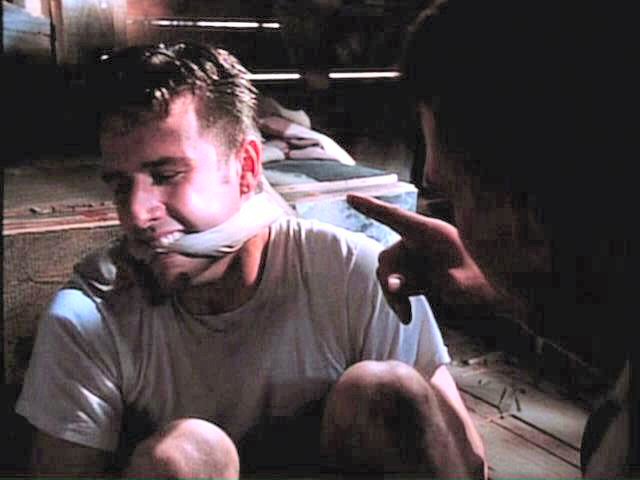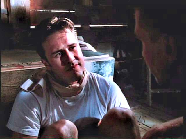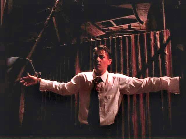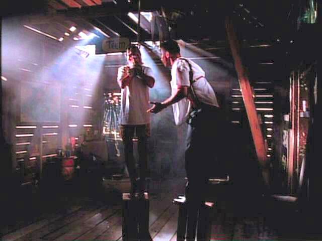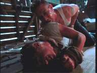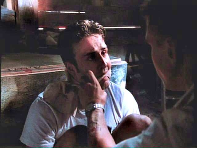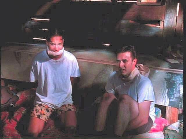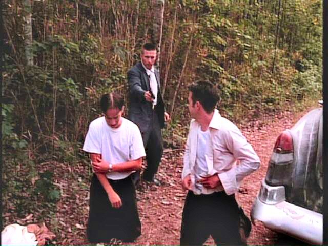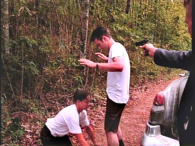 While playing a prank, three young men run afoul of some genuine bad guys. London is tied between two posts by Mickey Rourke; Arquette and Bleckman are terrorized by Stephen Baldwin.