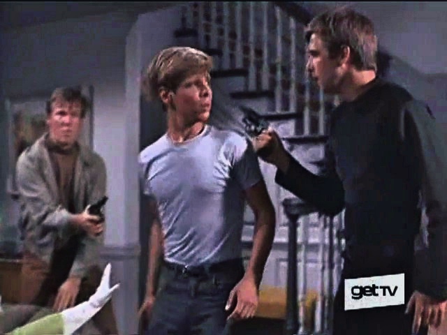 The wife and son of a department store manager are held hostage by the Beau Bridges gang.