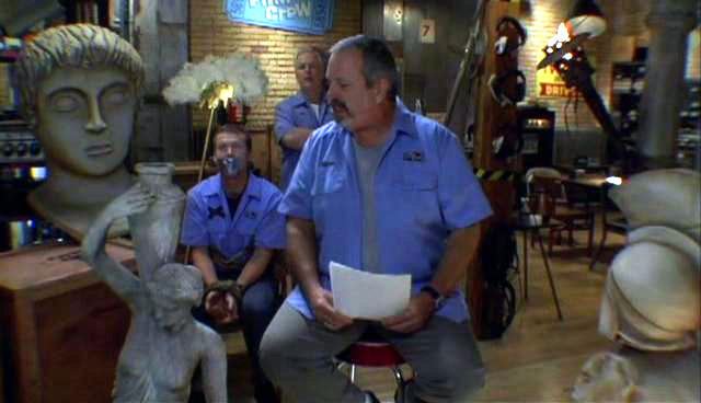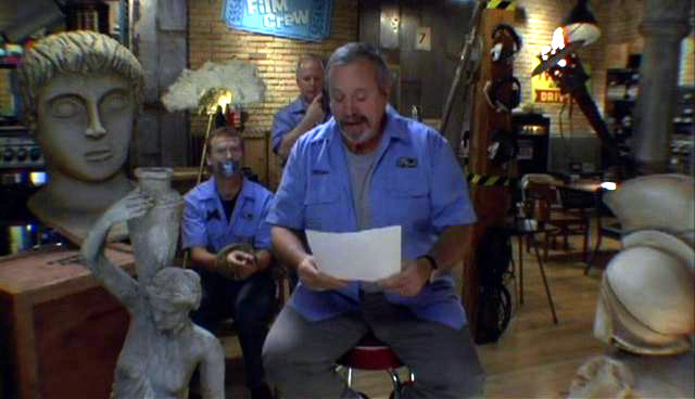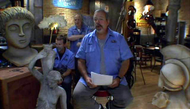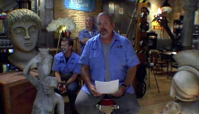 The MST3K guys have found new employment as The Film Crew. After a series of increasingly unsuccessful apologies to the audience, Bill and Kevin decide to keep Mike quiet by tying his hands and gagging him.