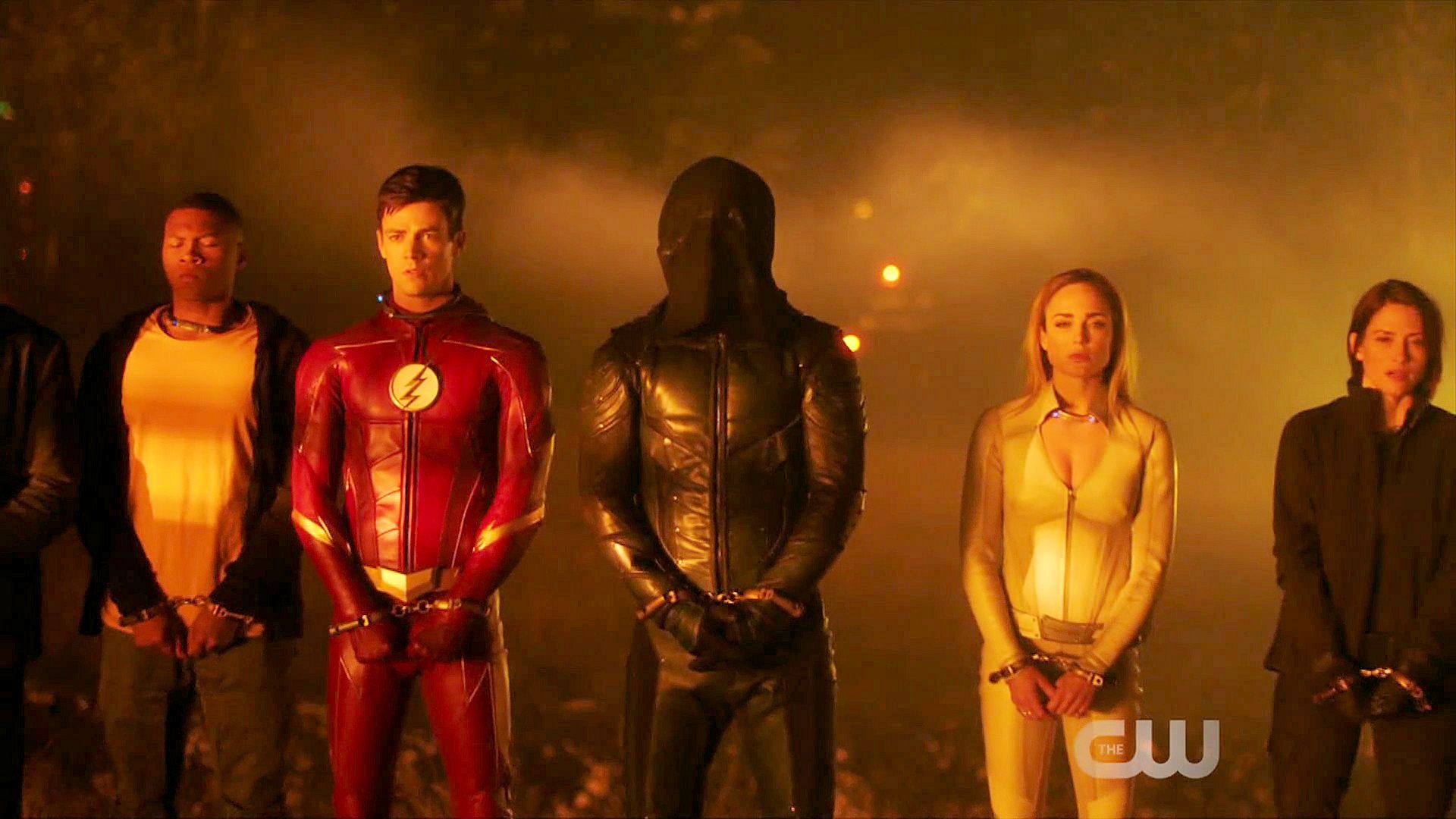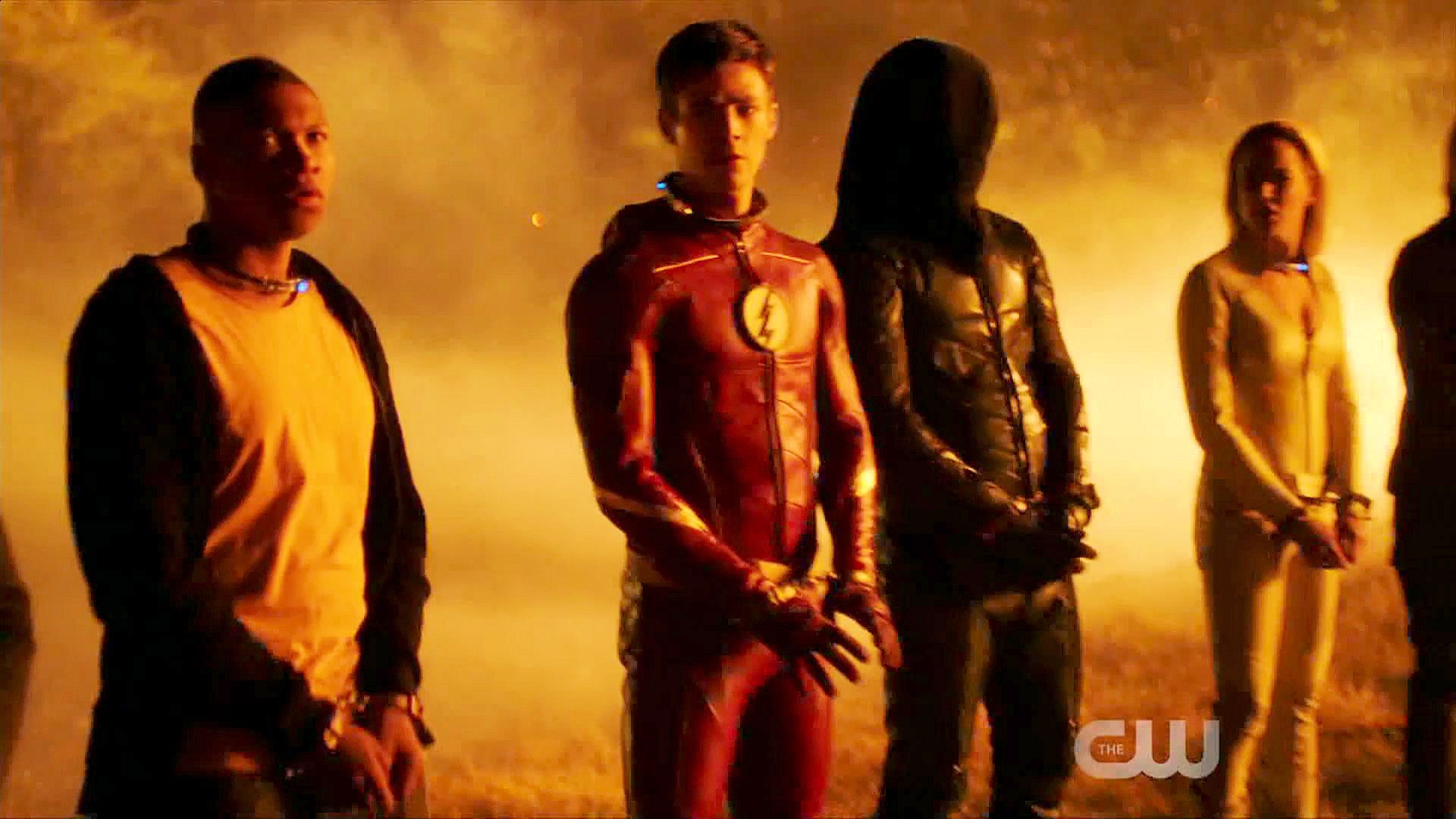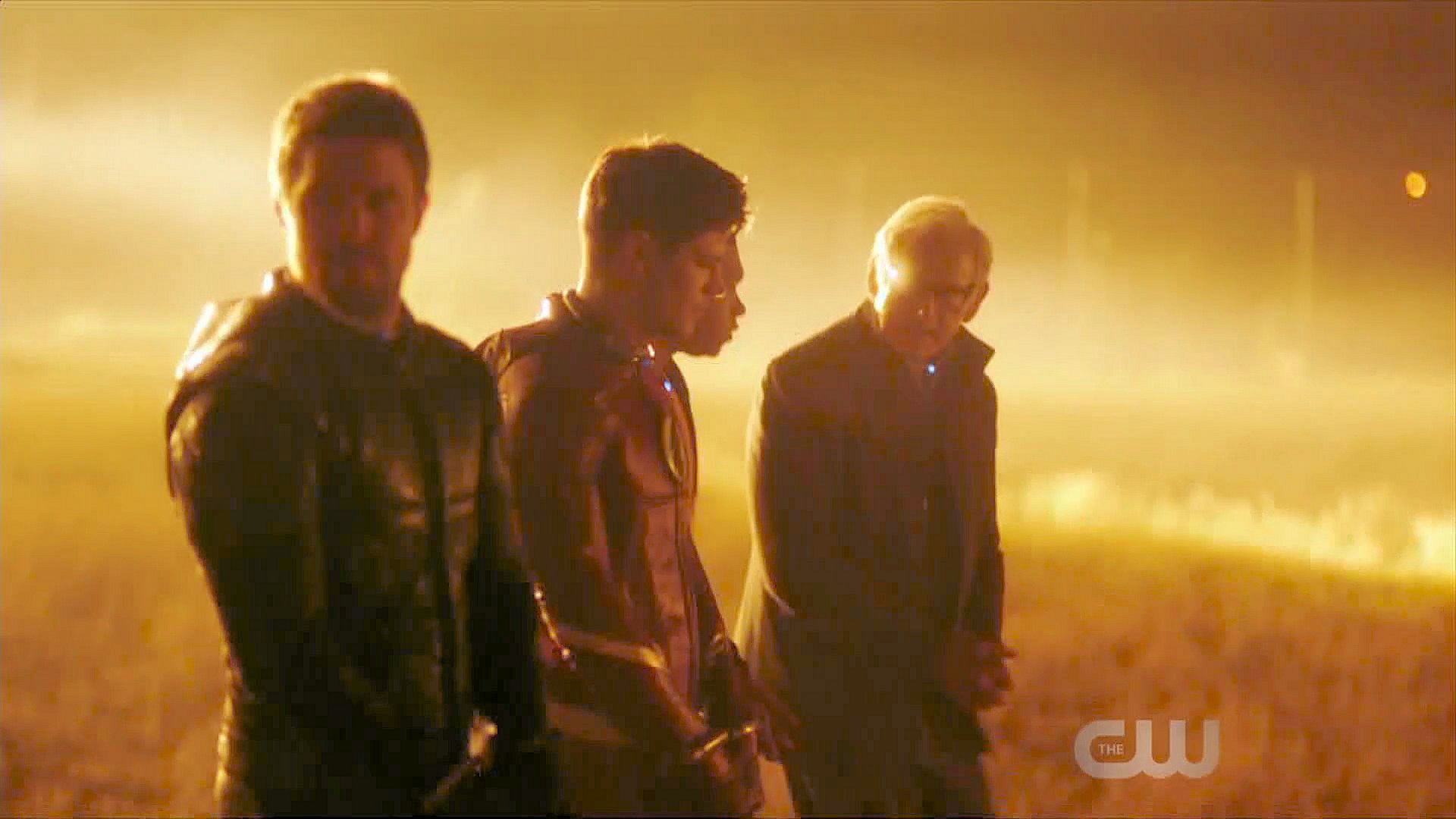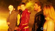 Grant Gustin, Stephen Amell and Franz Drameh in