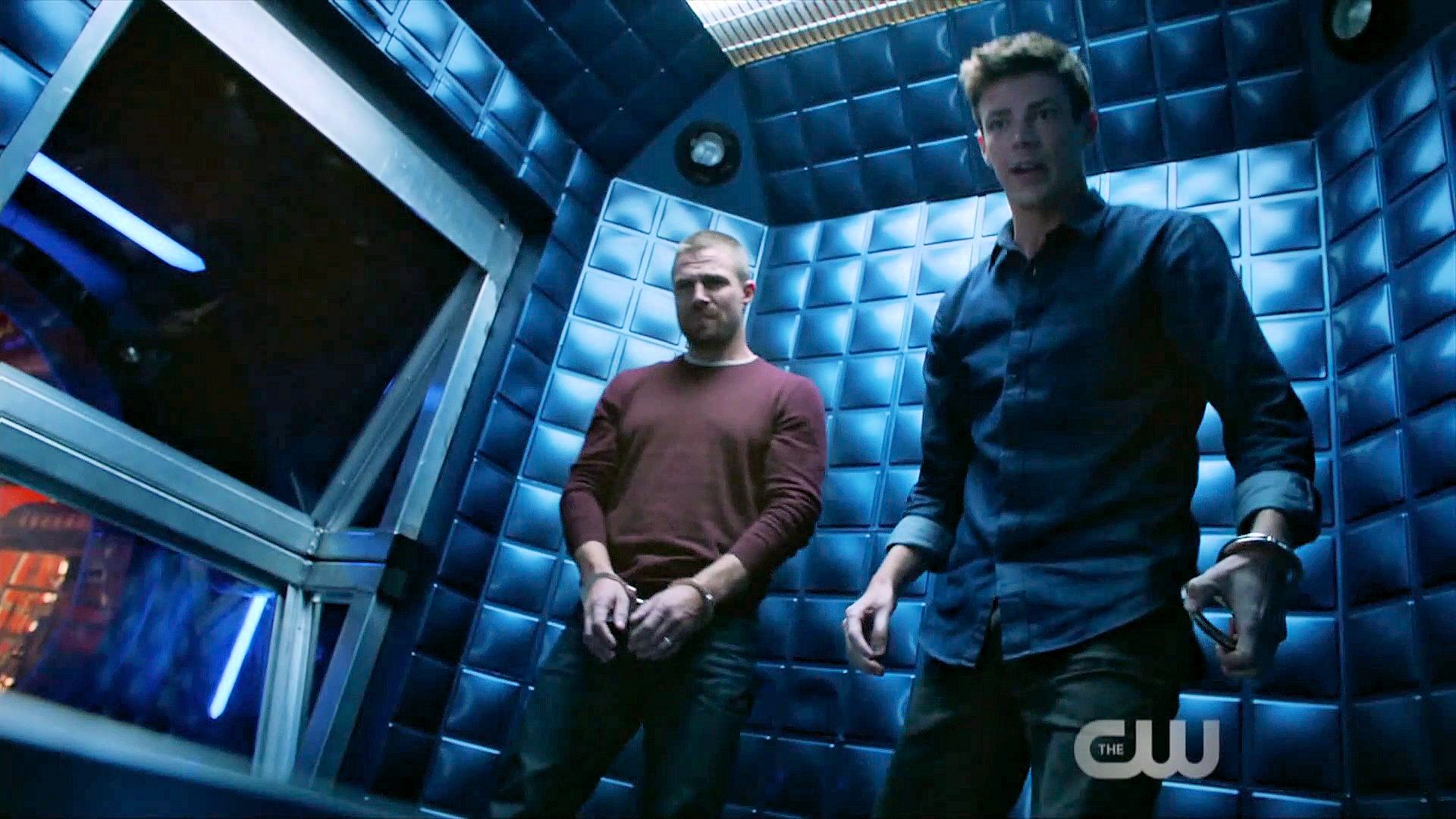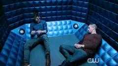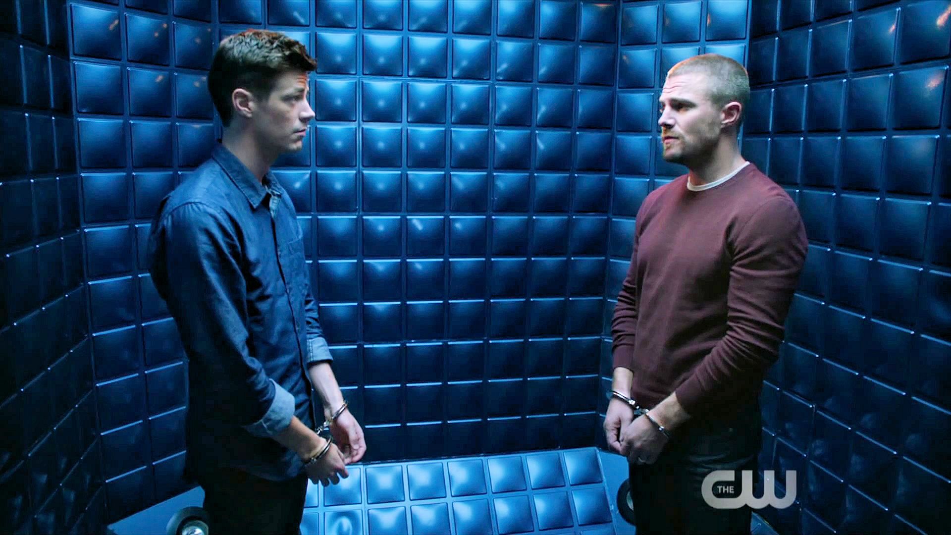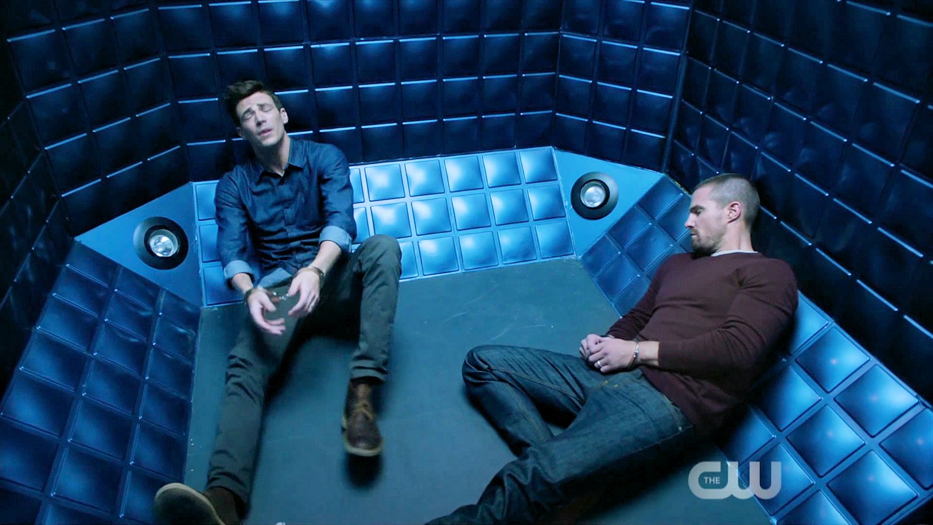 Team Flash doesn’t believe that Barry and Oliver have switched bodies and ends up locking them up in the pipeline.