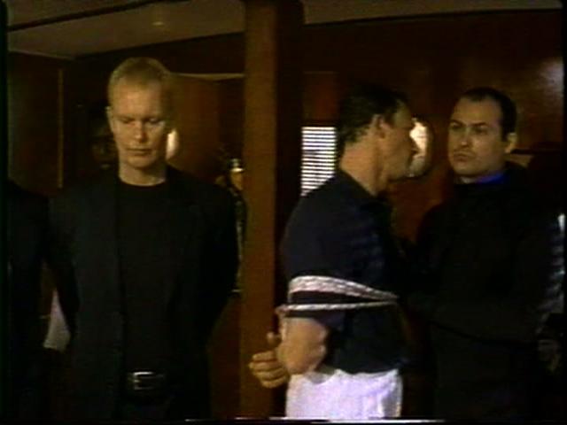 A drug dealer takes over the yacht where Quinn is about to wed and has all the guys tied up.