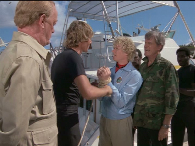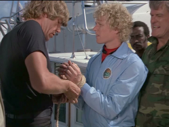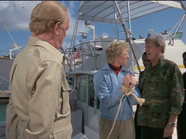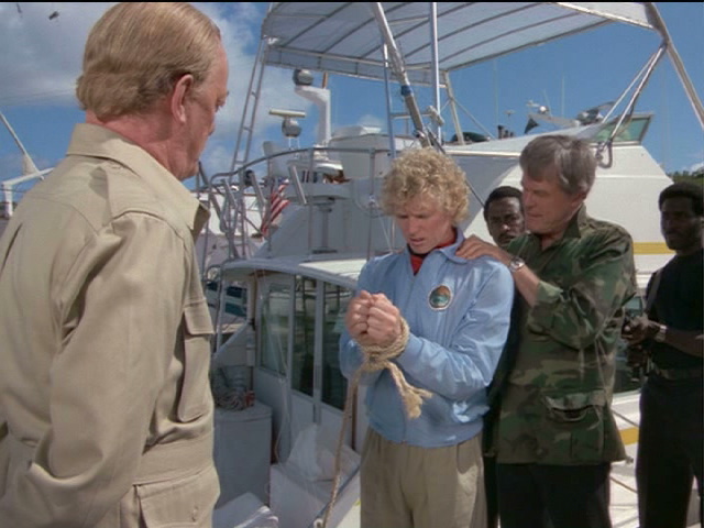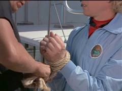 Ralph is keelhauled after being captured by the warden of a penal colony.