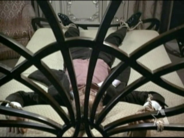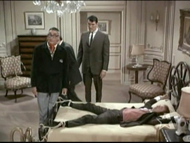 Mark is tied to a bed and gagged while searching for a stolen U.N.C.L.E. communications device.
