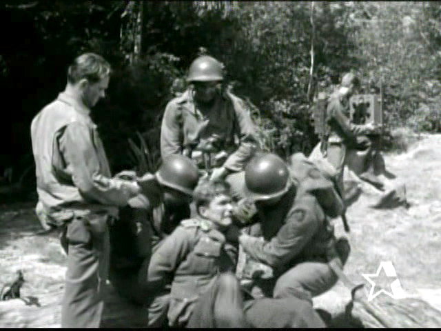 The squad captures a German corporal. As they approach a group of Germans, they keep the corporal tied and gagged so that he can't warn them, but he does it by knocking over a radio unit.