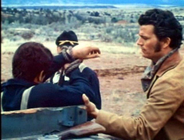 Fuller plays a soldier who tries to sabotage a Gatling gun. He's captured and lugged from place to place by the cavalry.