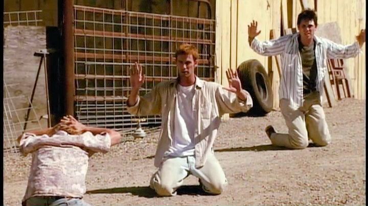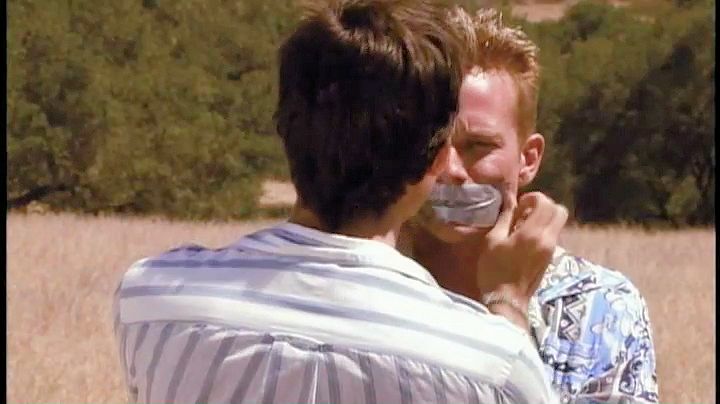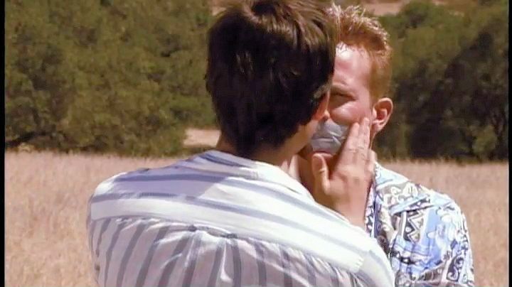 Josh Holland and Brent Florence in A Girl, Three Guys, and a Gun