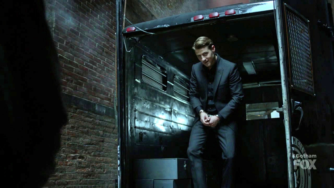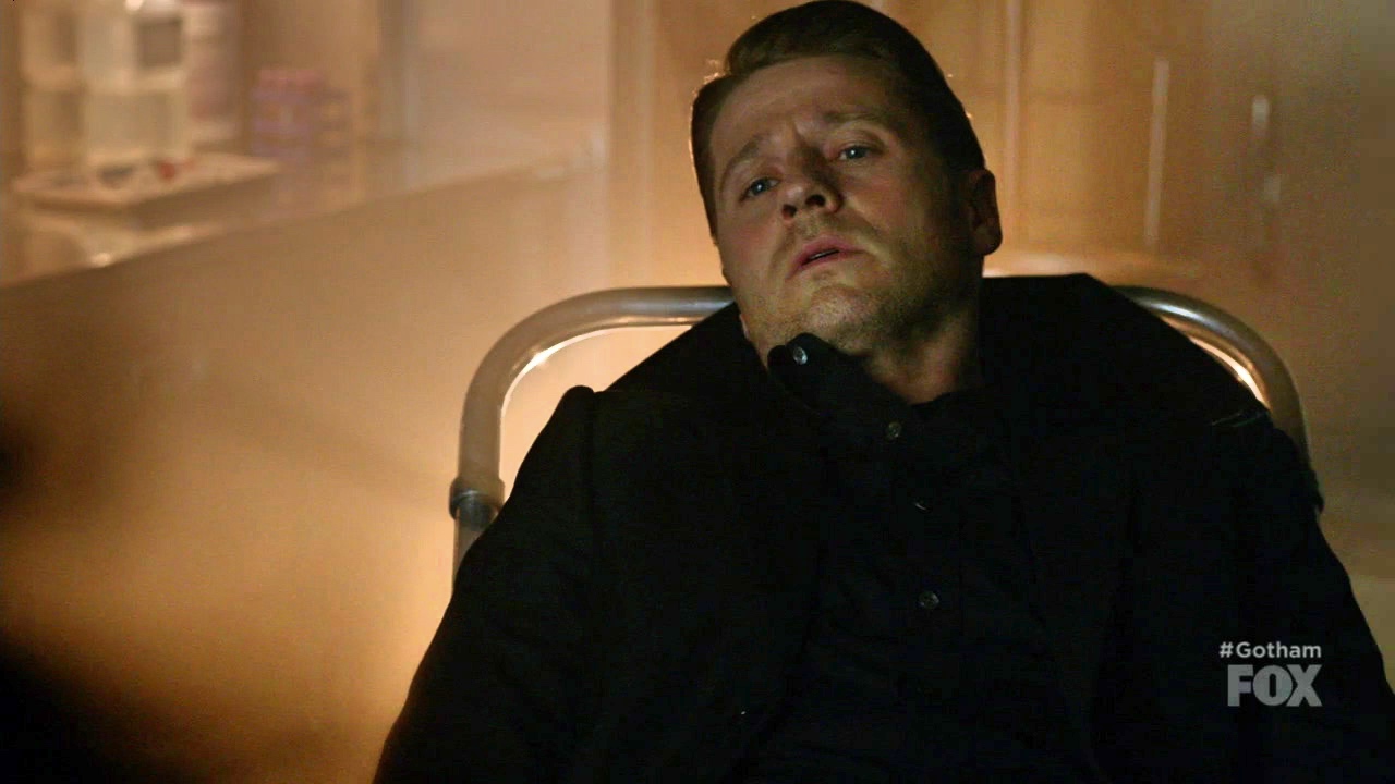 Gordon is knocked out while under the influence of the Mad Hatter and wakes up handcuffed and under suicide watch.