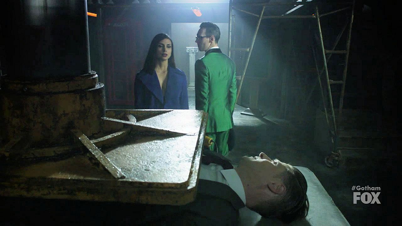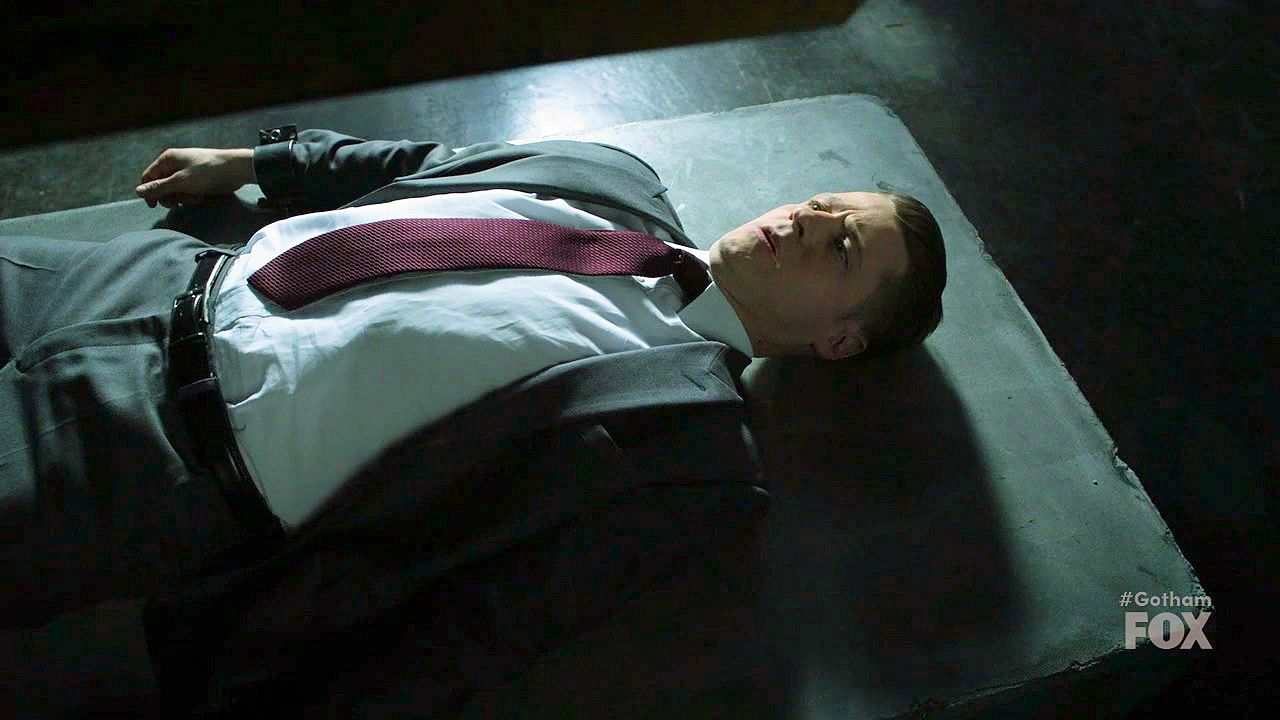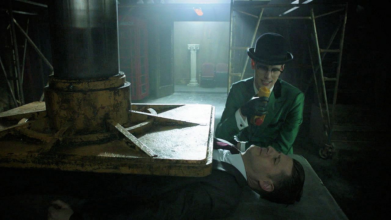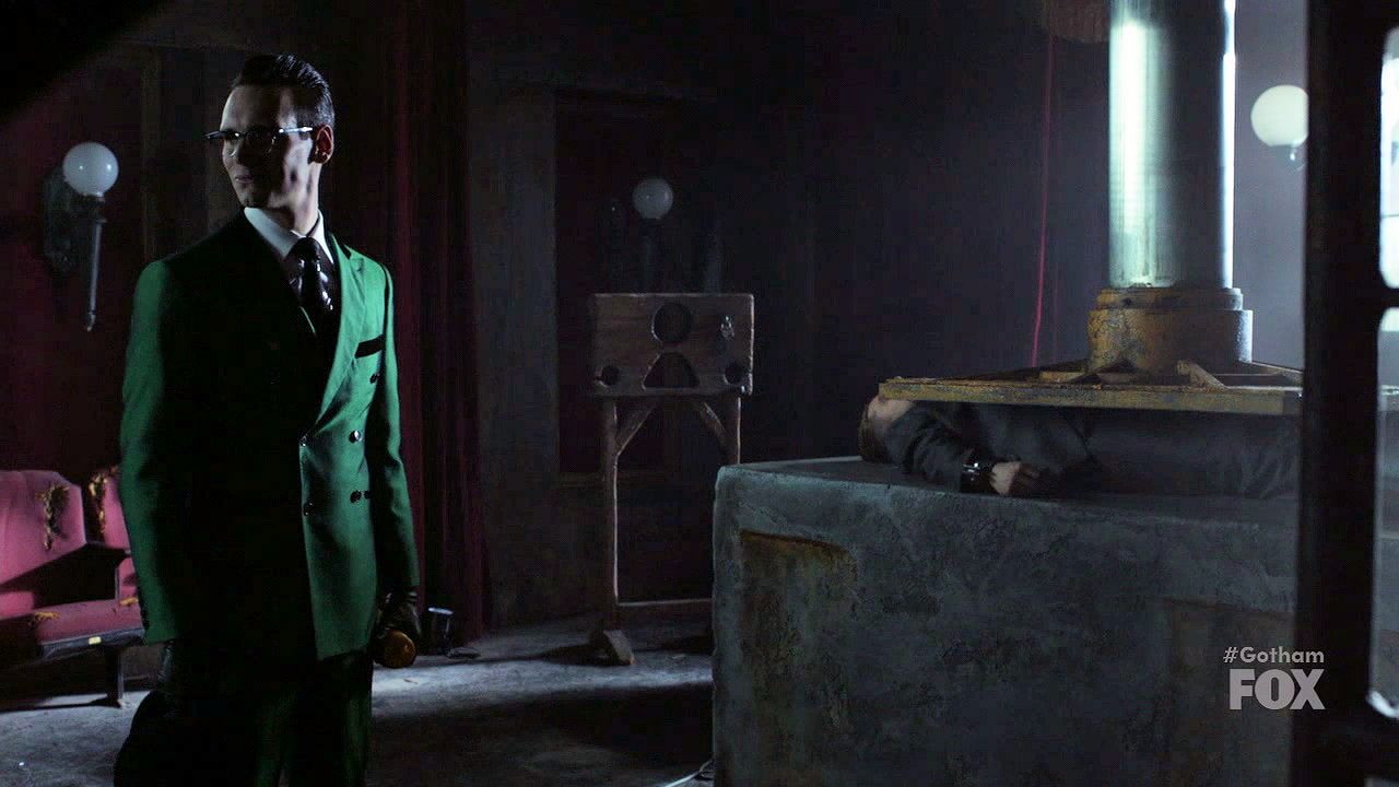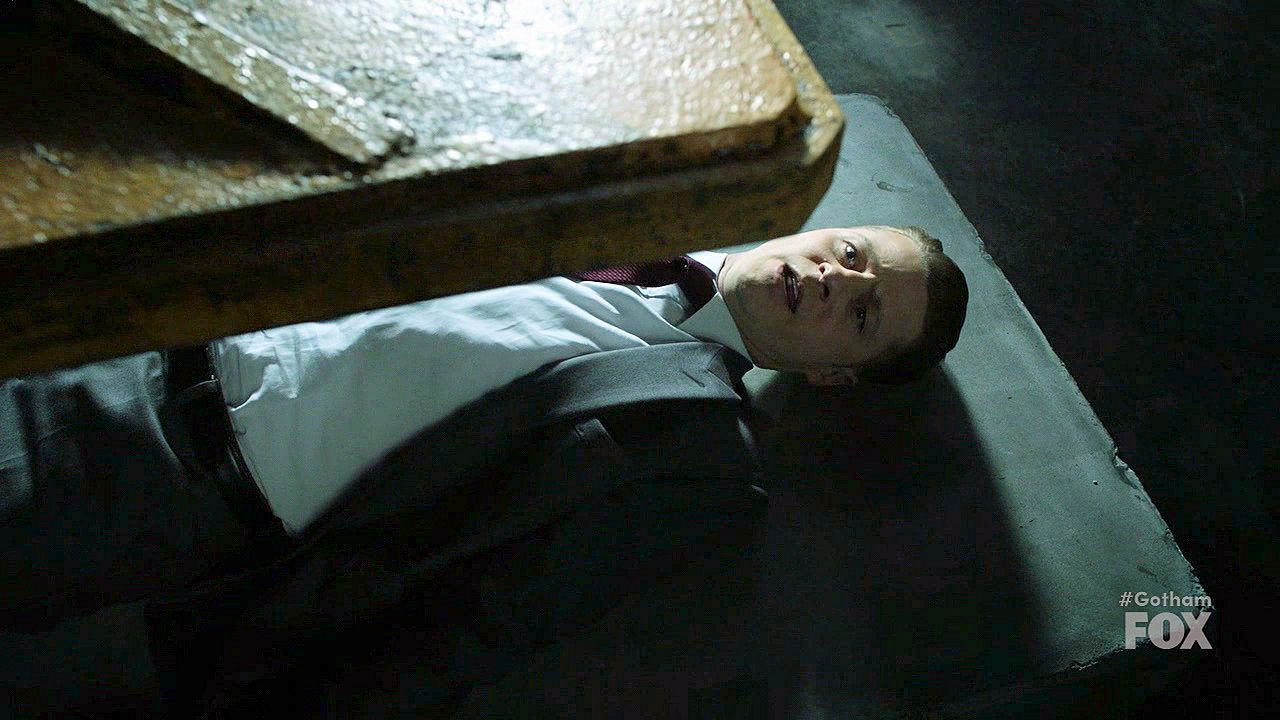 Jeremiah warns of more destruction coming and demands to see Bruce; Nygma tortures Jim by pressing him under a large slab.
