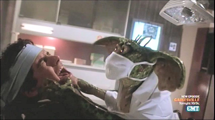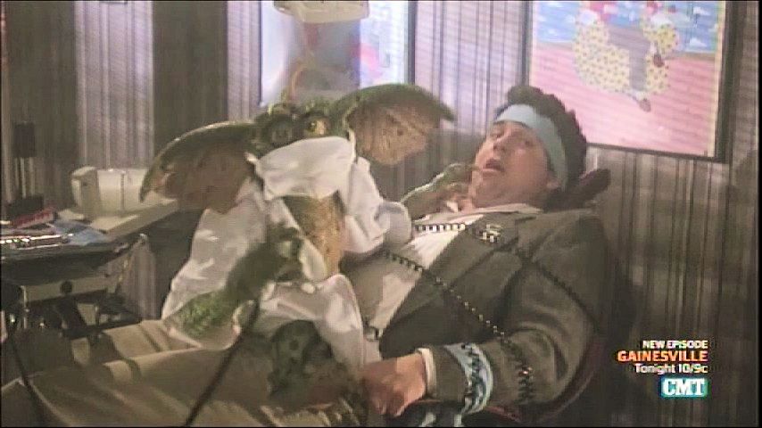 Galligan is tied up by a gremlin who re-enacts a scene from Marathon Man.