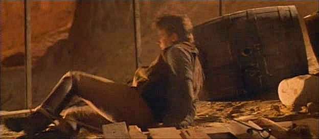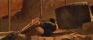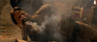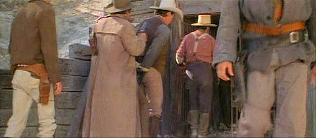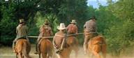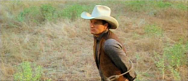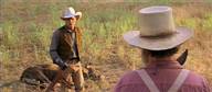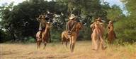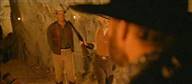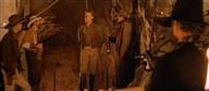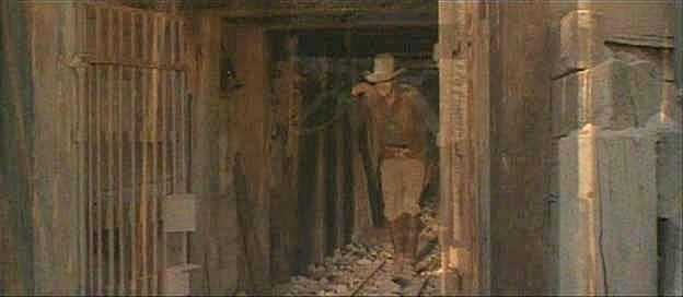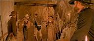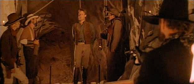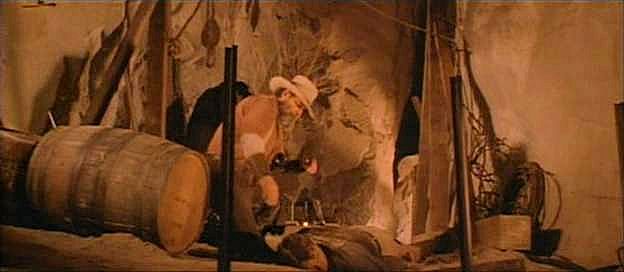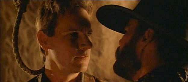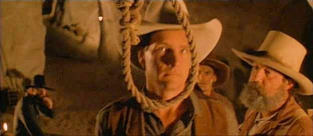In this revisiting of classic B-Westerns, the hero is threatened with hanging, and then left tied up near some lit dynamite.