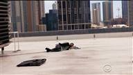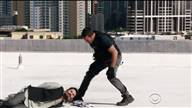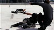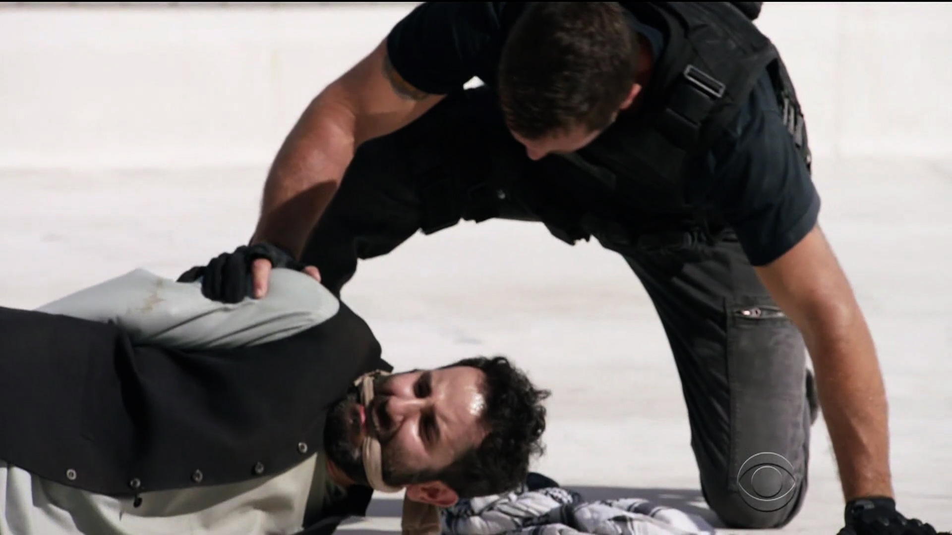 A man being set up as a fall guy for assassins is tied and gagged before the attack.