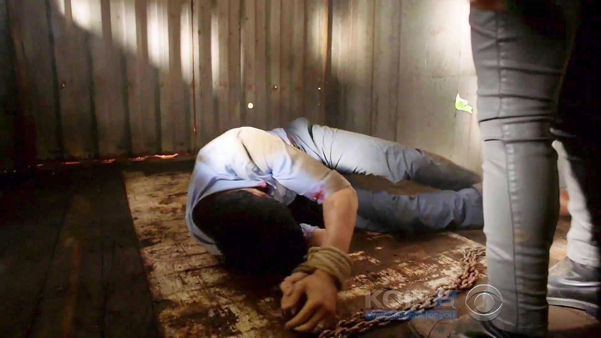 Adam is kidnapped and kept in a shed in the jungle.