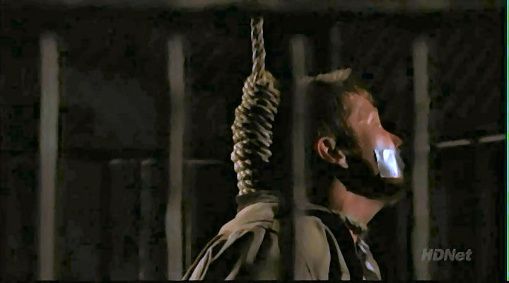 a noose around his neck, and rigging a tripwire that will hang Jamie when Mike tries to rescue him.