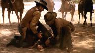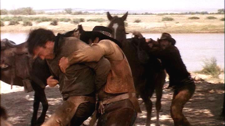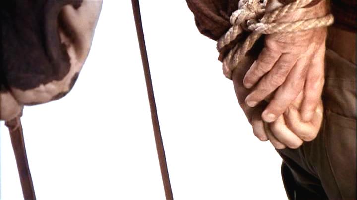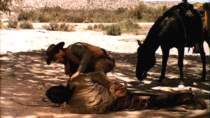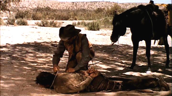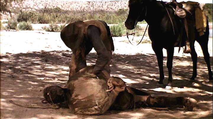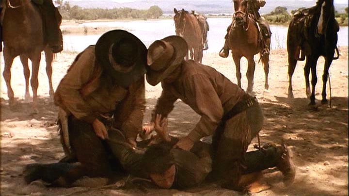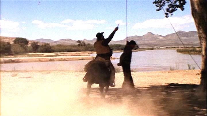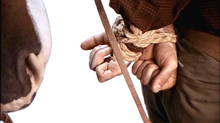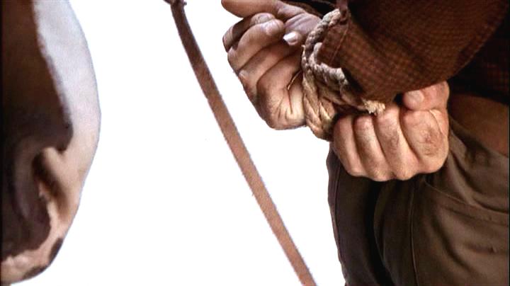 After surviving a lynching, Eastwood prevents the lynching of three rustlers, and then brings them in, keeping Bruce Dern tied up because he's still a threat.
