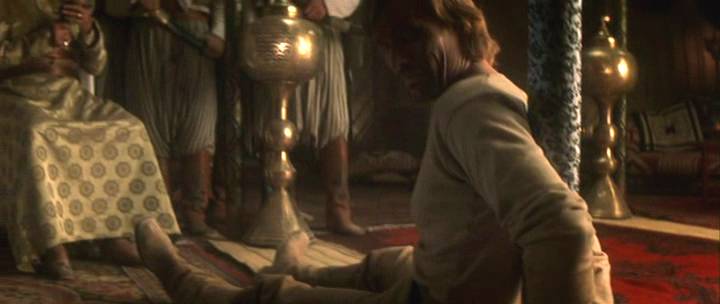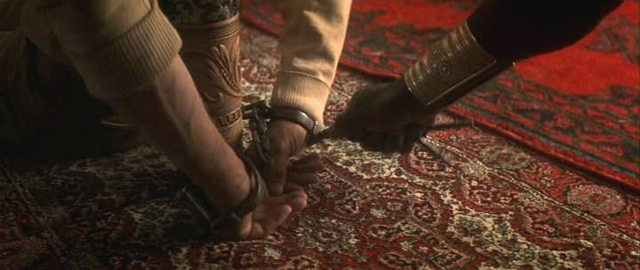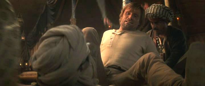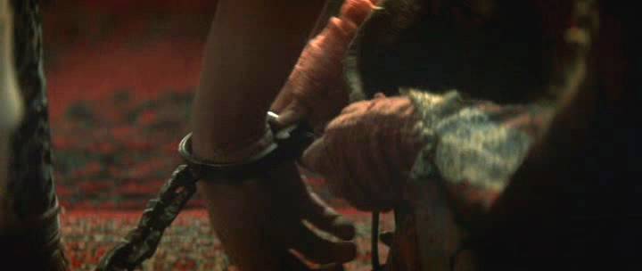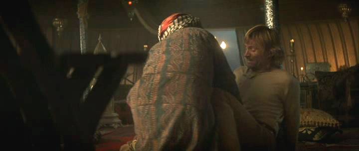 An American horseman enters a race in the Middle East, where a Sheik handcuffs him to a post and threatens to castrate him.