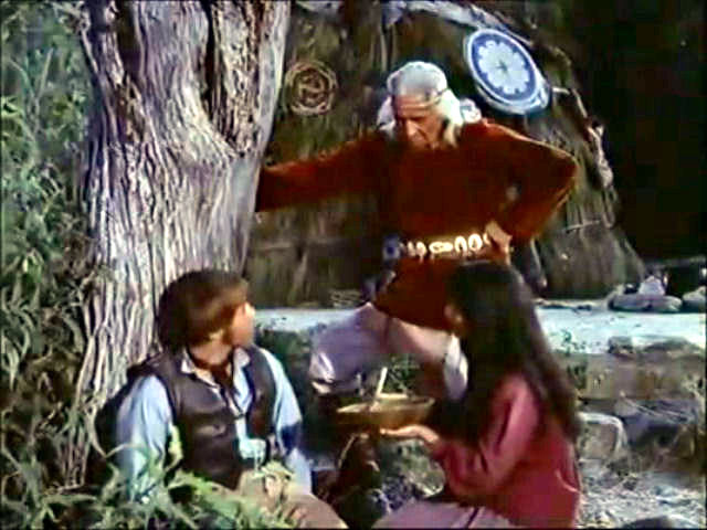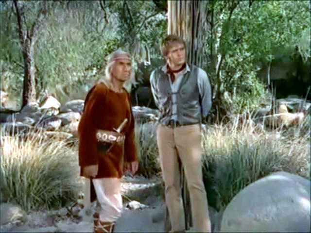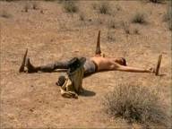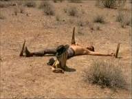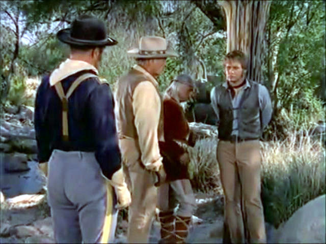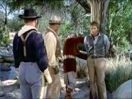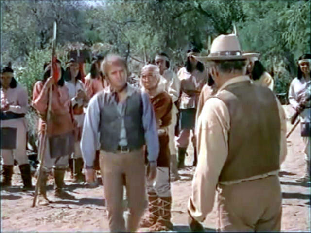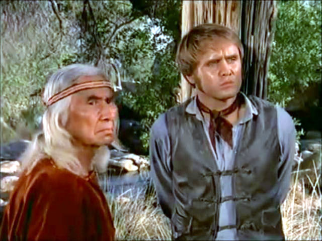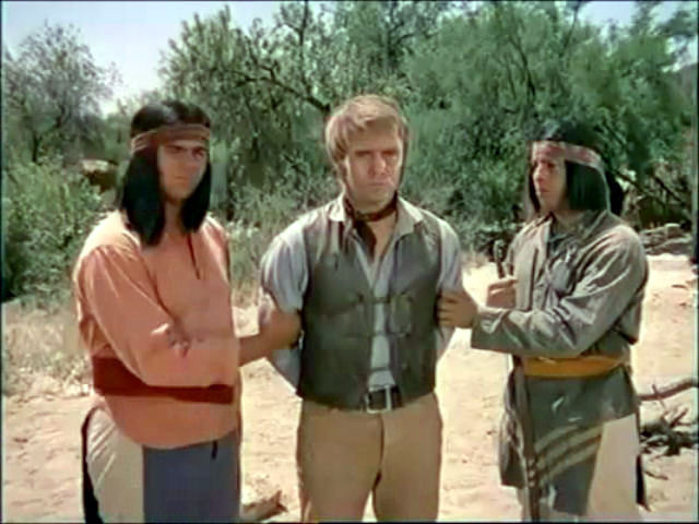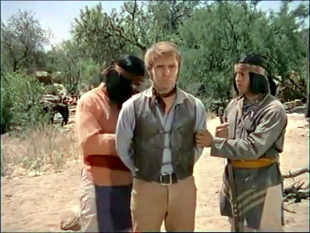 Blue is captured by the Apaches, who keep him tied up in order to use him to stave off an impending cavalry attack.