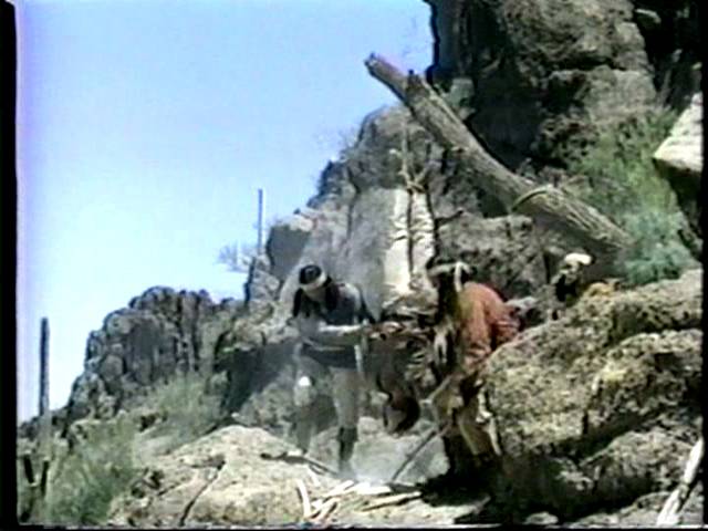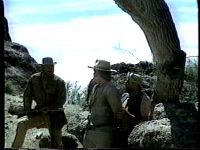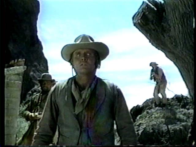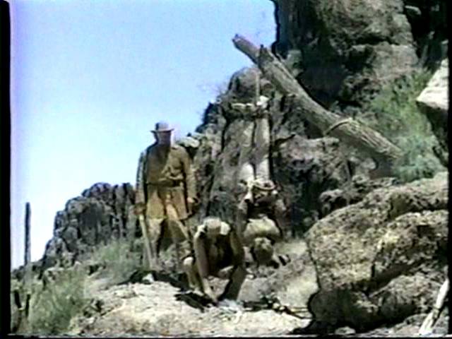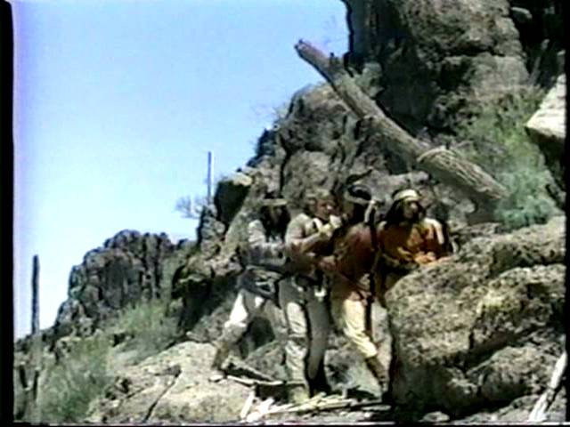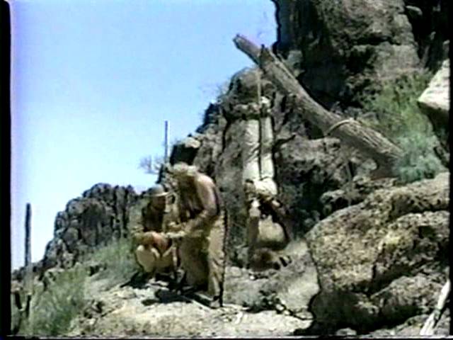 While on his way to talk Buck into returning home, Blue is waylaid by John's enemies. They hang him up and light a fire under him, so that John will think it was done by Apaches. However, some Apaches have been watching the whole thing, and untie Blue.