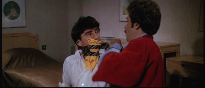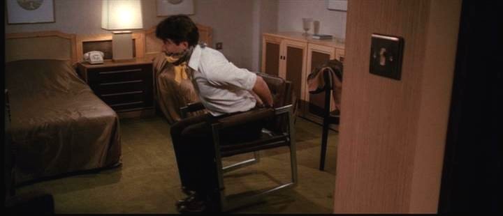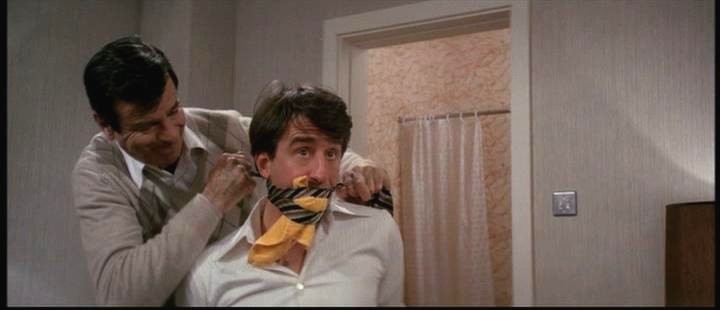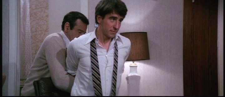 Walter Matthau has outsmarted a federal agent and ties him to a chair in a hotel room, to be rescued by an associate.