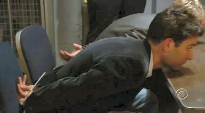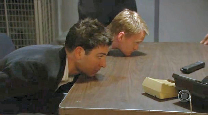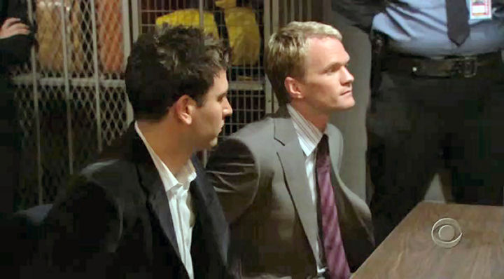 Ted and Barney are detained by airport security when Barney drags Ted to the airport to pick up girls.