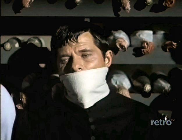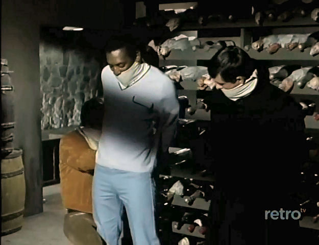 by enemy spies and tied up in a wine cellar with a bomb set to go off.