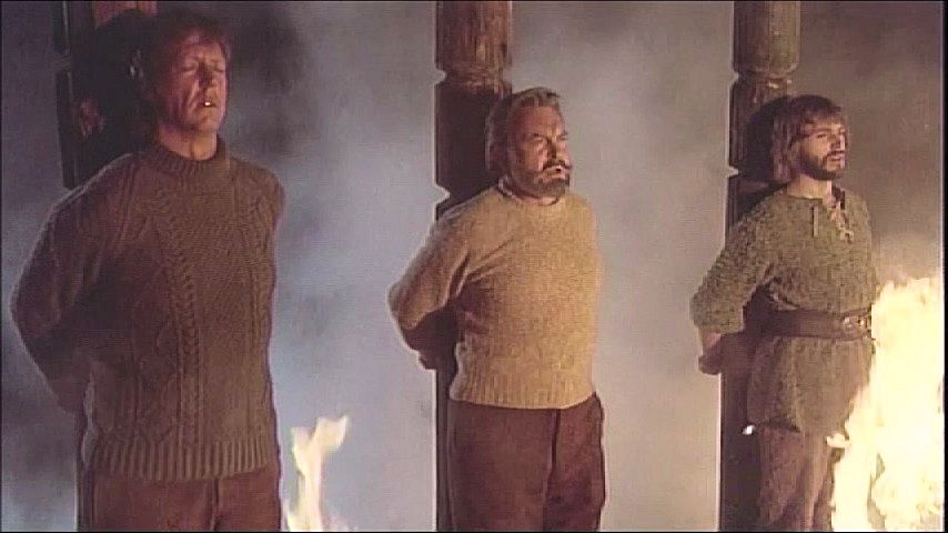 Three explorers are nearly burned to death by Vikings, but are saved by a Viking girl.