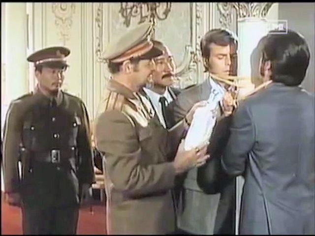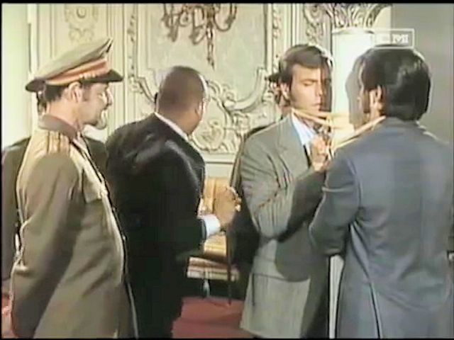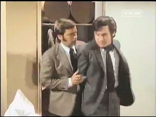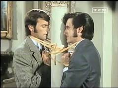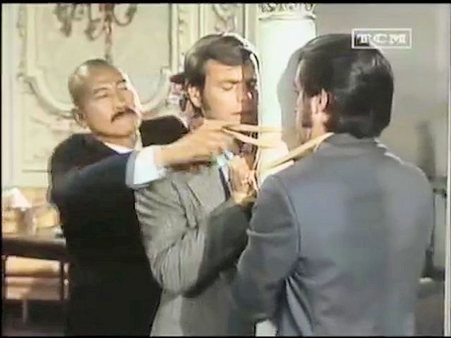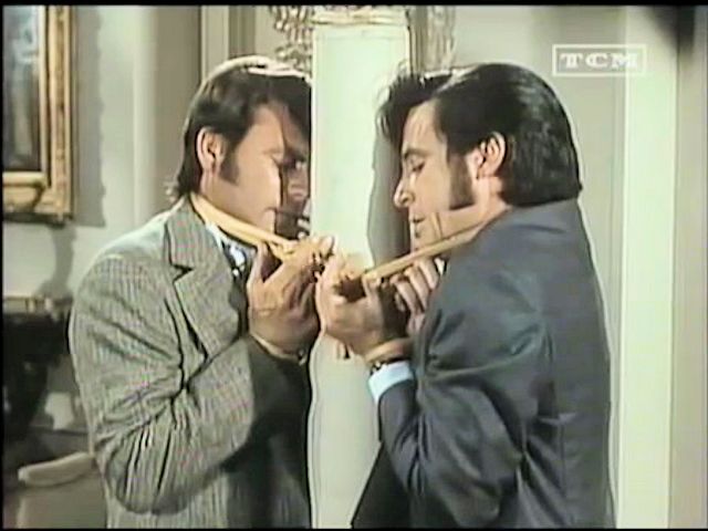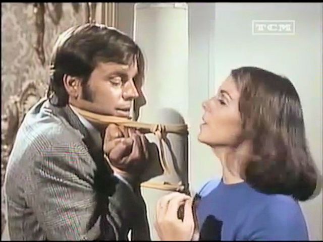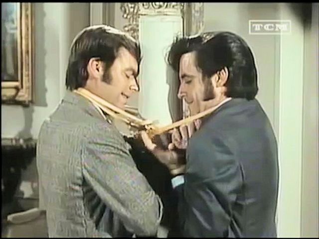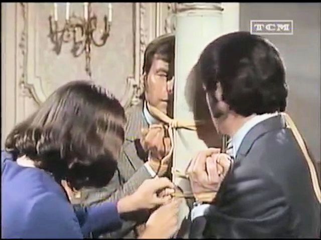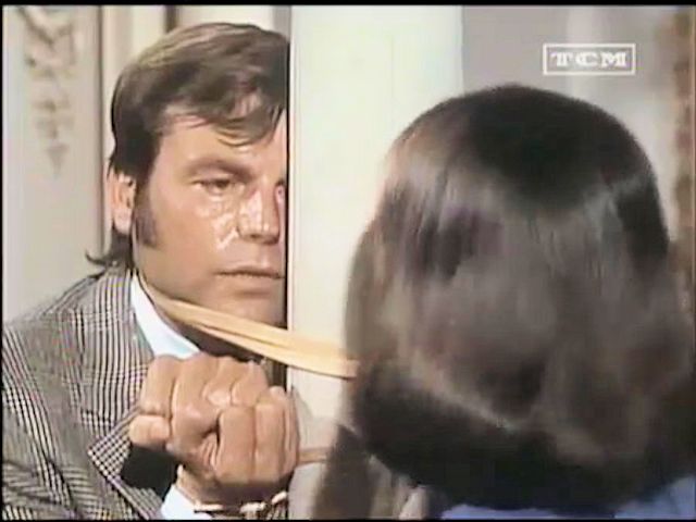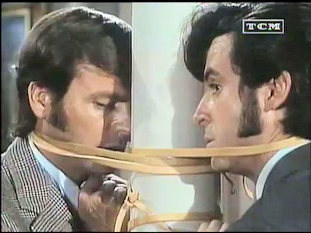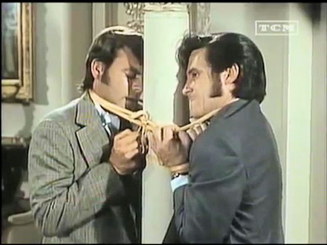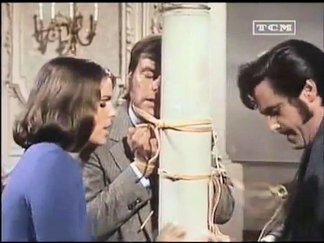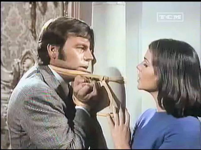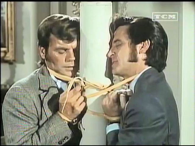 Al and Joe Manetti are in a difficult position with their necks and hands tied by wet leather straps; they're rescued by Susan Saint James.