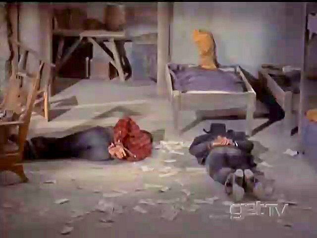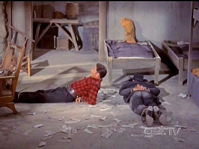 by robbing a train. When they find him, they're not happy that he beat them to the robbery.