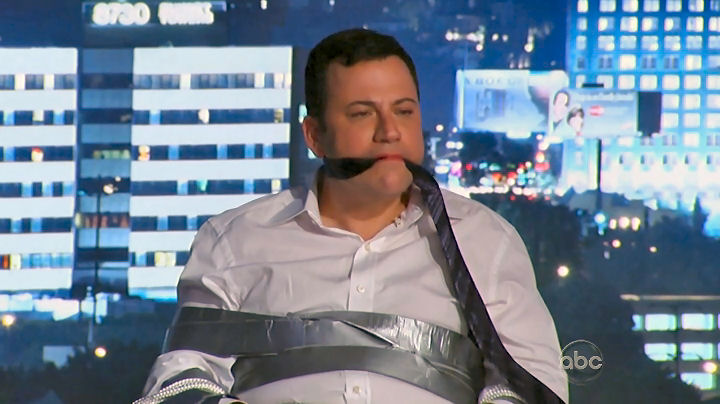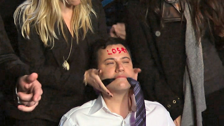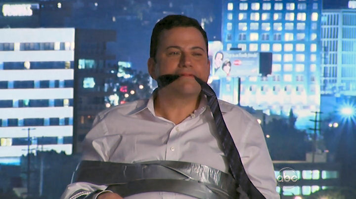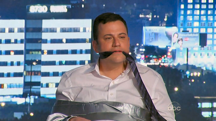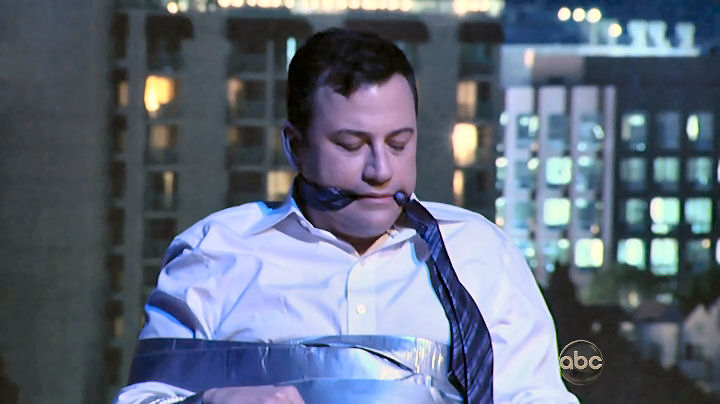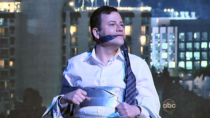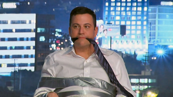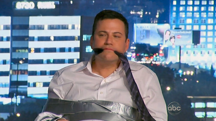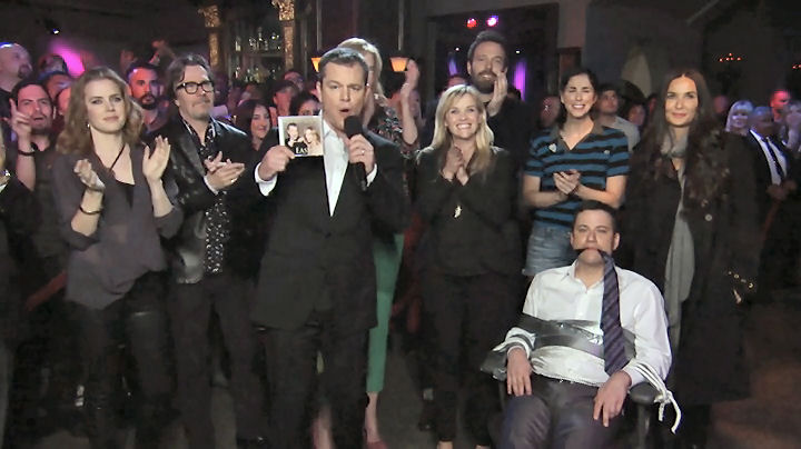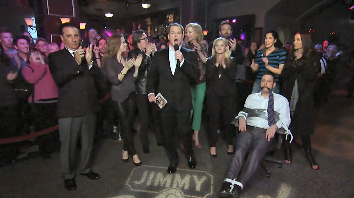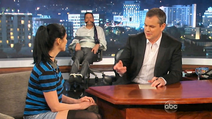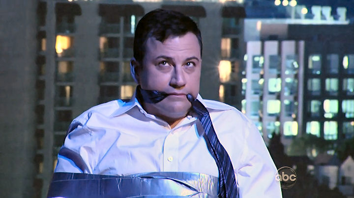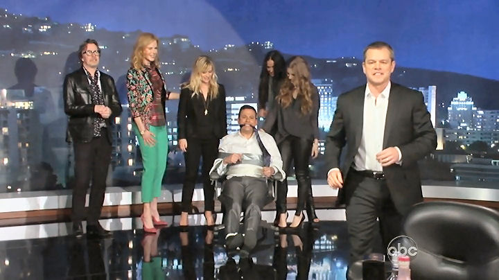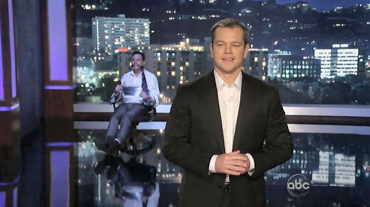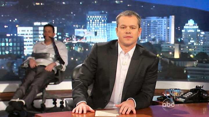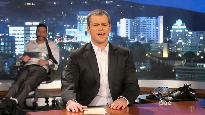 After years of abuse, Matt Damon snaps. He kidnaps Kimmel and takes over his show. At one point, we see Jimmy