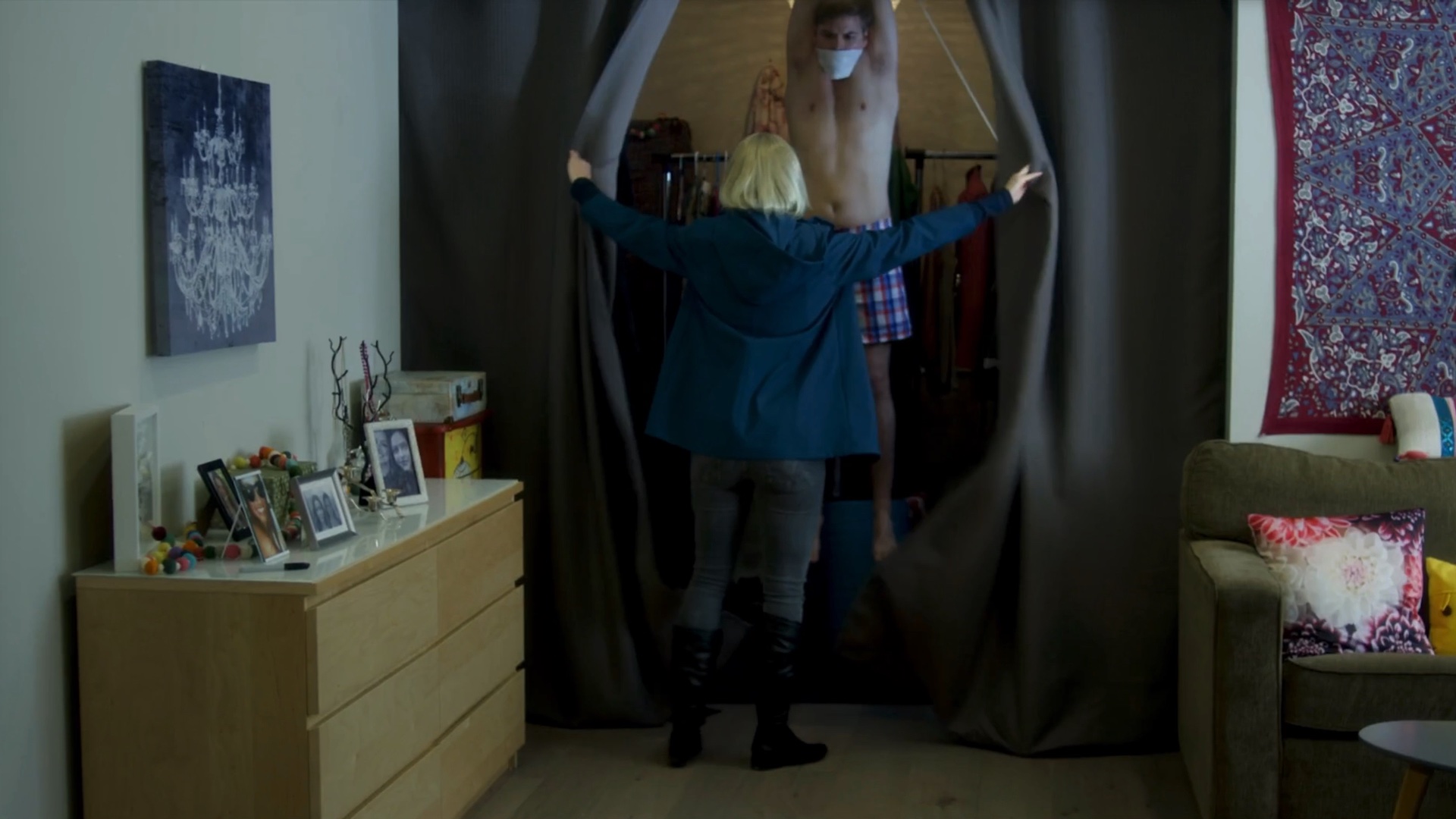 A man is tied and gagged by a kidnapper.