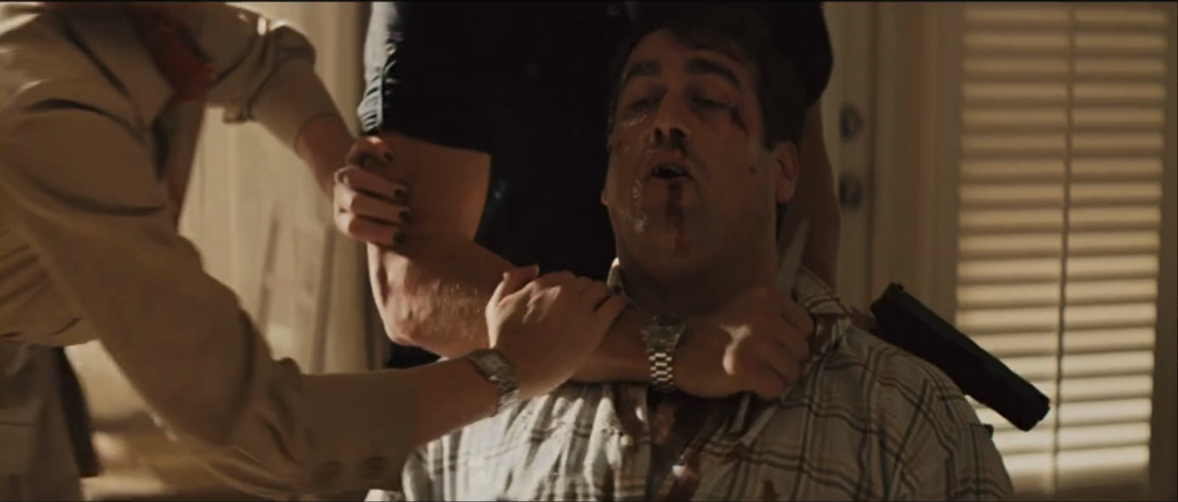 A professional assassin fights and subdues a friend who's secretly a fellow assassin.