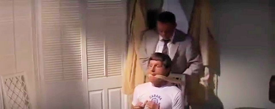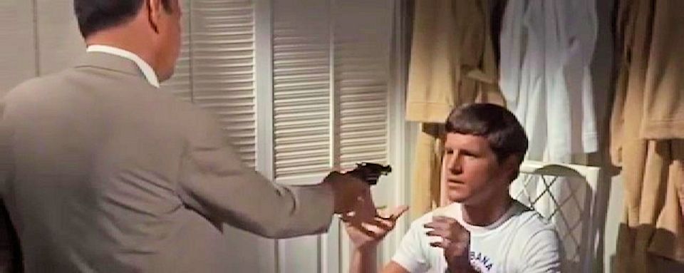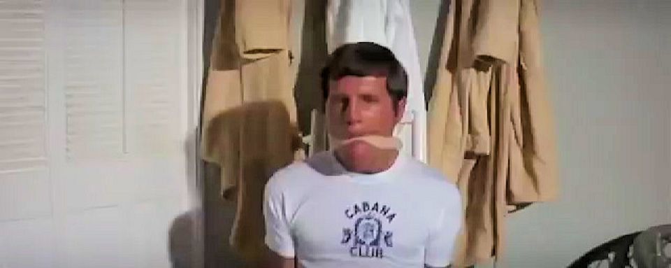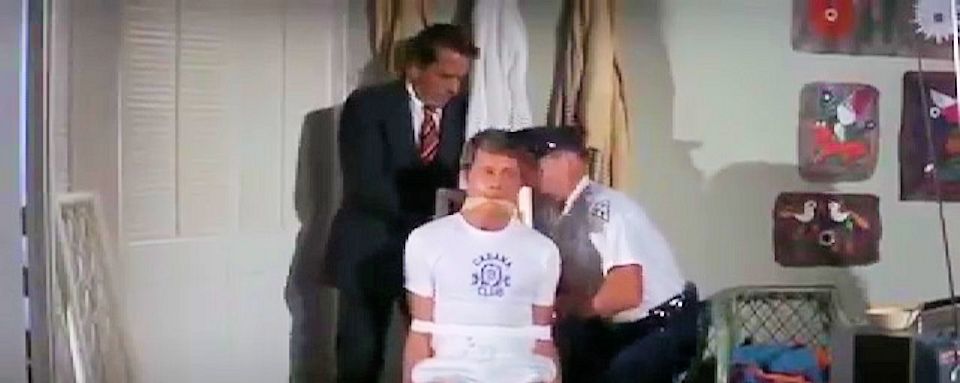 A pool boy is tied and gagged by a wanted Tony Rome when he recognizes him.