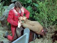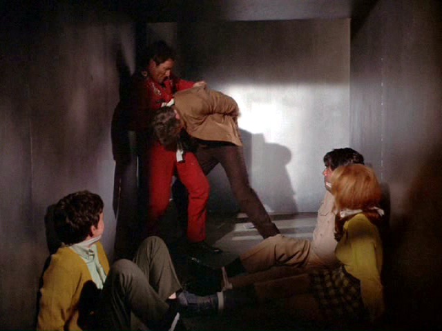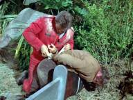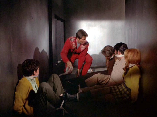 Steve is infected by spores and becomes paranoid, so he ties up and gags most of his companions.