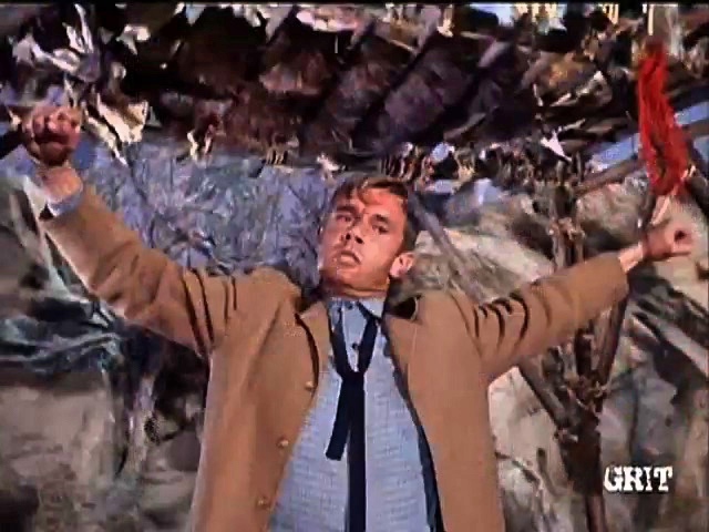 Sioux braves repeatedly attack a man who claims to be waiting for his fiancee to arrive on a stage.