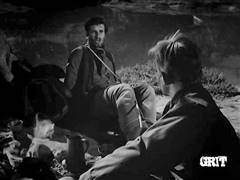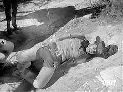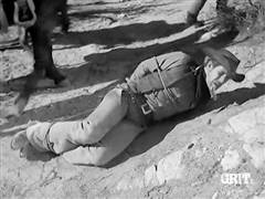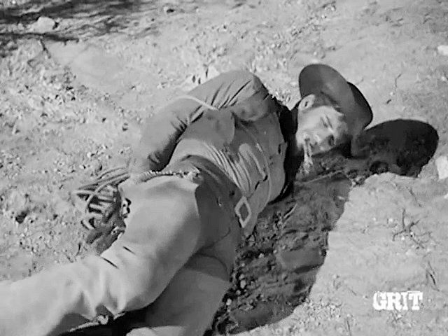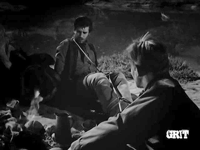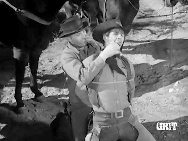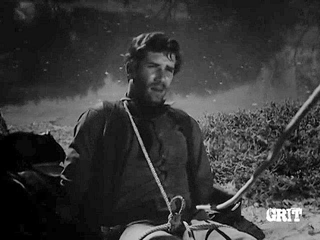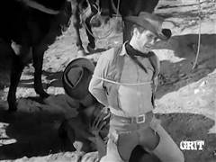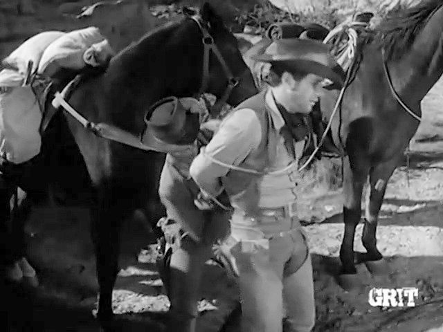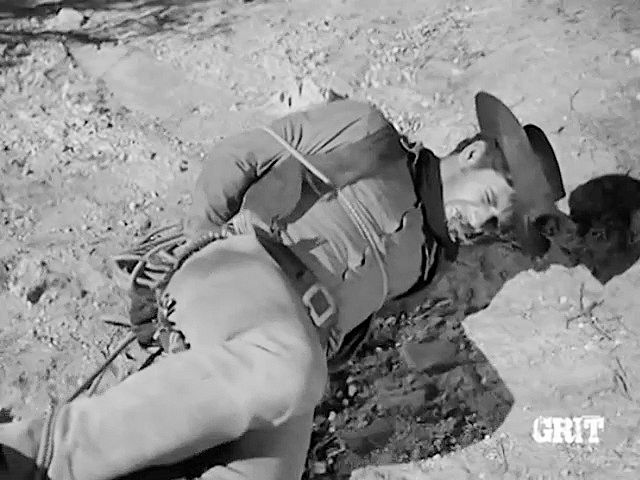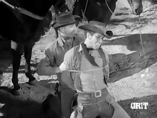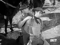 An outlaw tries to force Jess to lead him to some hidden gold, keeping him tied up at night during the journey. (The night scenes are very dark.)