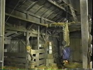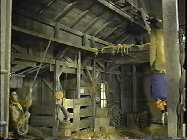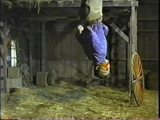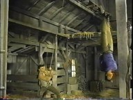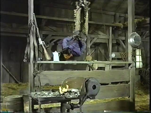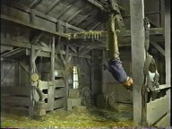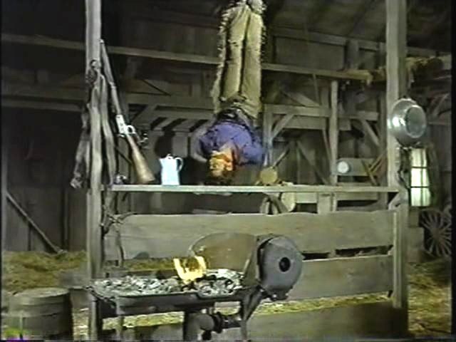 Chad is hit from behind, tied, gagged, and hung upside down. He knocks a nearby rifle into the fire, alerting Joe to his predicament.