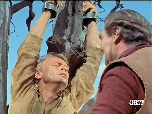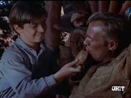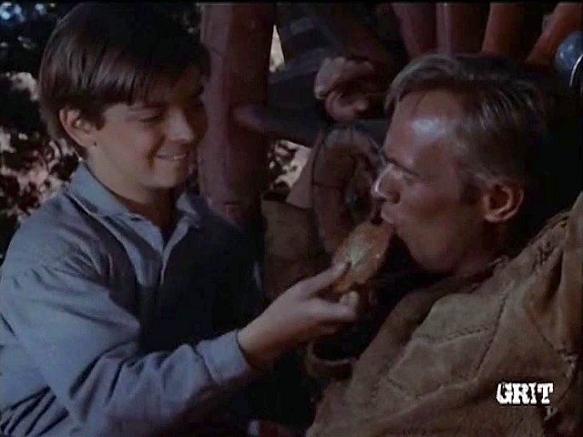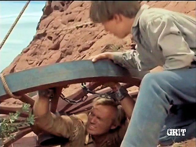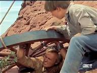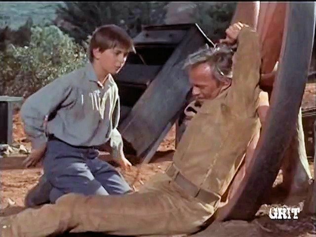 tied to falls over a cliff, and he's saved by a boy he befriended.