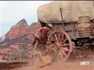 An accused murderer being brought to trial by a corrupt sheriff miraculously survives when the wagon he's
