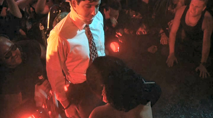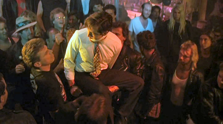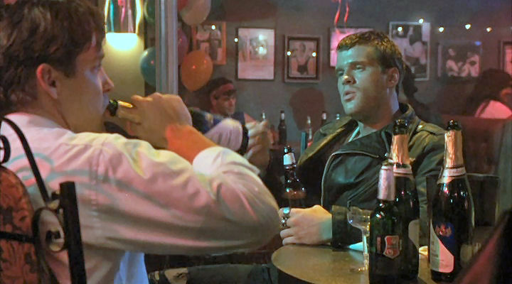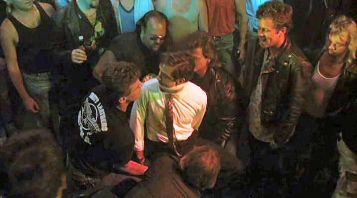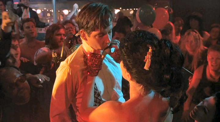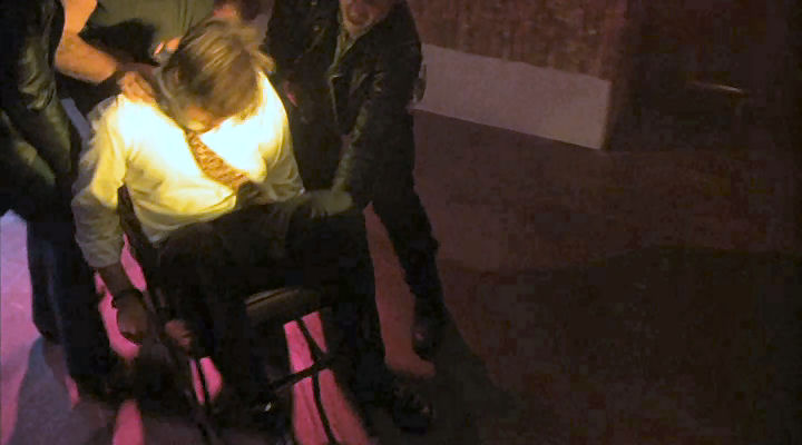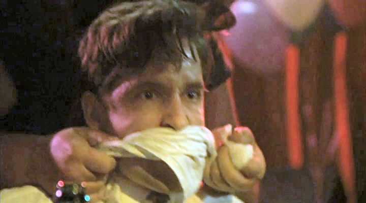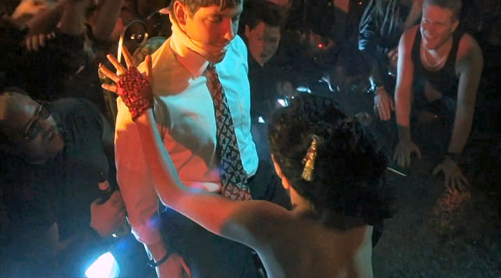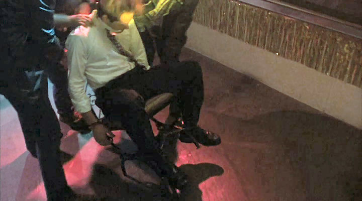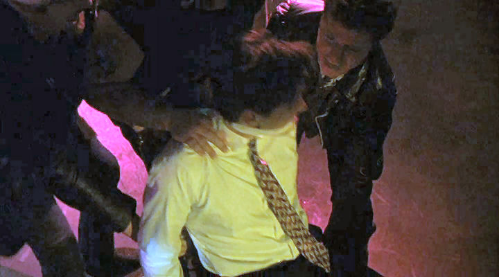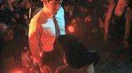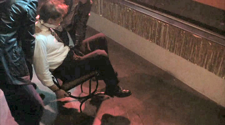 Mickey's friends provide a stripper for him, and they tie him to a chair to make sure he enjoys it.