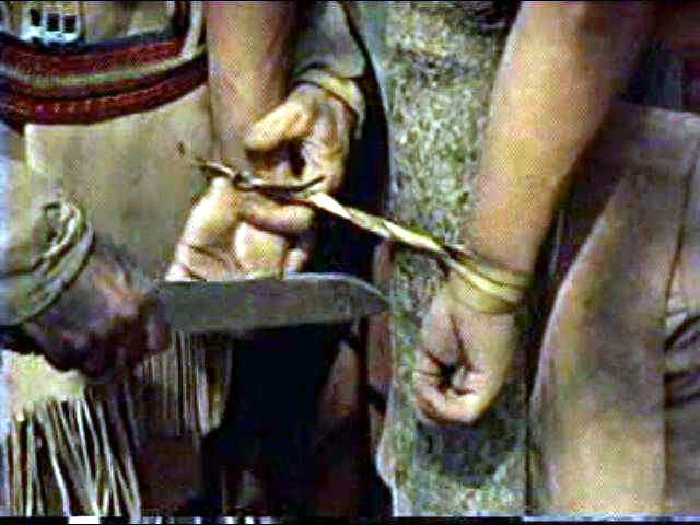 A young white man is traded back to settlers, who keep him tied up until he's acclimated. Later, he returns and is threatened with burning, after helping the settlers avoid an ambush.